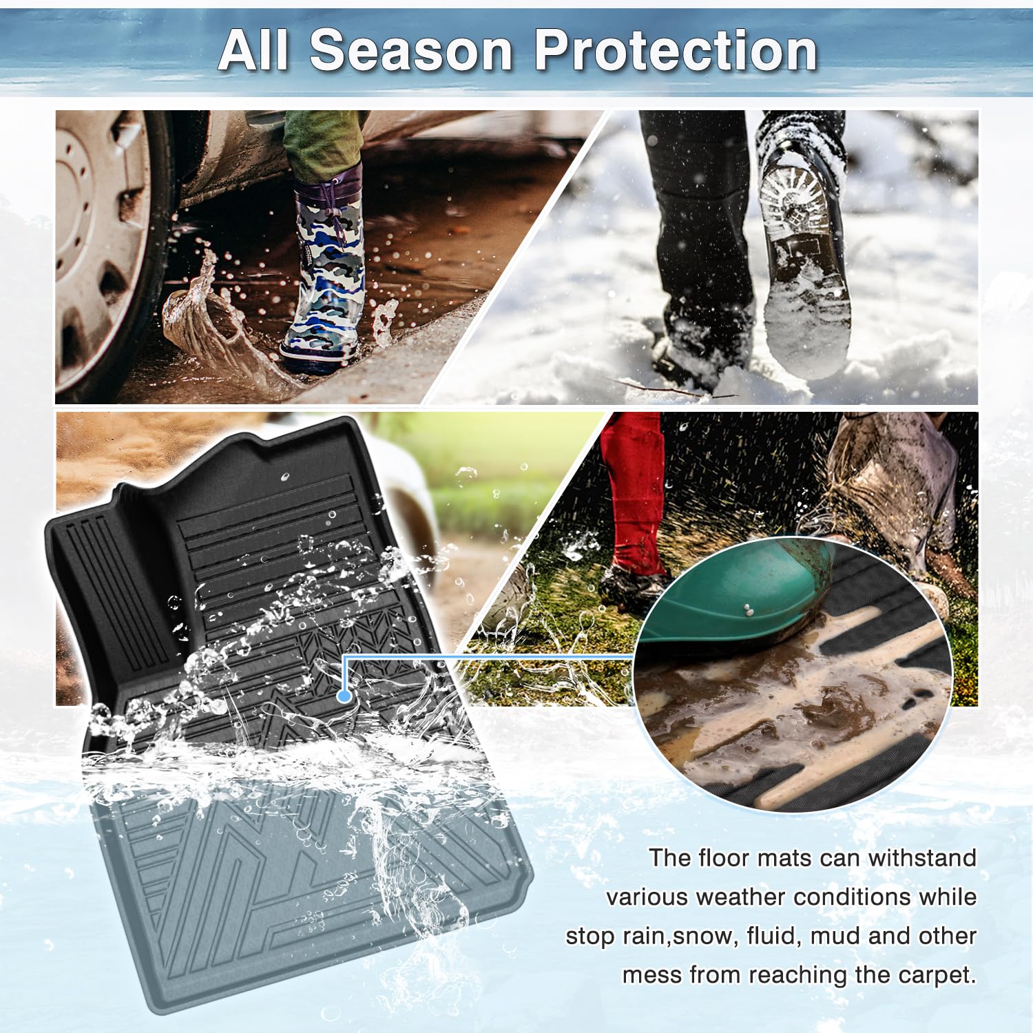 2. Material TPE resistente a todo tipo de clima y seguro: Los tapetes están hechos de materiales TPE resistentes al agua, duraderos, resistentes al desgaste, antideslizantes y sin olor. El material TPE de alta densidad y seguro mantiene su flexibilidad en todas las estaciones y ofrece un excelente tacto y una resistencia extrema al desgaste.