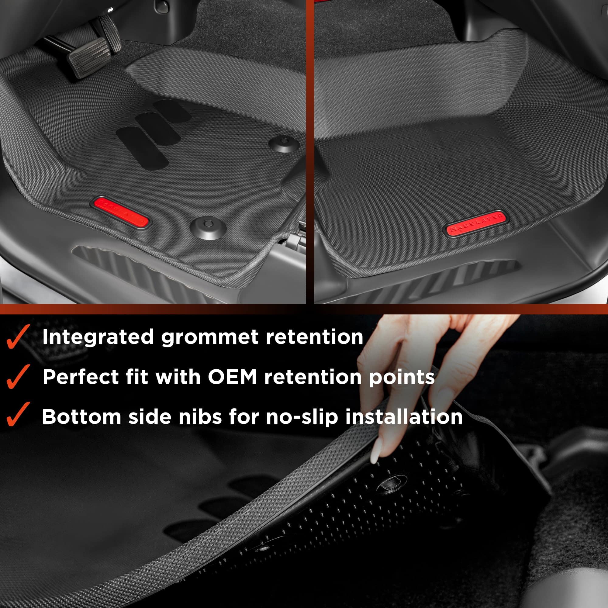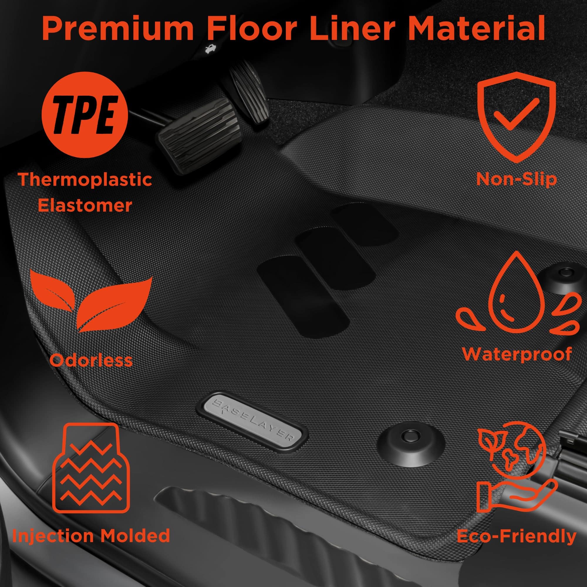 Las alfombrillas interiores BaseLayer para Chevy Silverado y accesorios GMC Sierra están diseñadas con escaneo láser digital 3D para un ajuste exacto al perfil del piso OEM. Las alfombrillas para todo clima impermeables protegen su vehículo de los elementos, la lluvia, la nieve, el barro y los derrames. Los tapetes Baselayer Silverado y Sierra 1500 son la combinación perfecta de durabilidad y buena apariencia. Fáciles de quitar y limpiar para mantener la sensación de coche nuevo. La seguridad es la máxima prioridad, el tapete del lado del conductor se bloquea a las características de retención de fábrica. El contorno de la alfombrilla se ajusta exactamente al perfil del piso del camión. El ajuste de precisión y las características de la protuberancia en la superficie inferior evitan cualquier movimiento durante la instalación. Las alfombrillas para camiones Chevy y GMC Baselayer están moldeadas por inyección de TPE, un material termoplástico elastomérico de grado ecológico superior. Robusto, duradero y resistente con una atractiva textura antideslizante en toda la superficie de la alfombrilla. Incluido. Hecho en EE. UU.