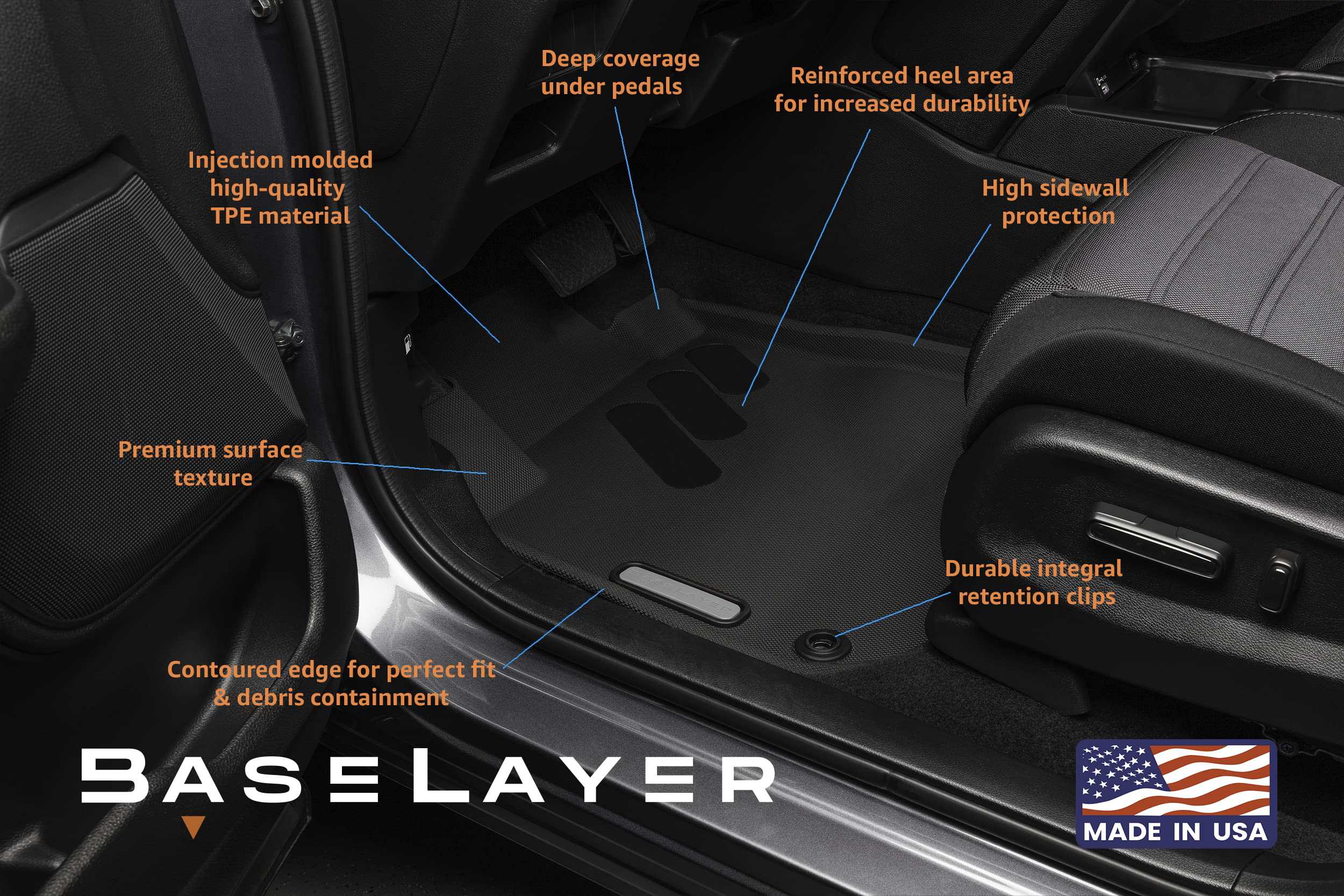 1. Tapetes interiores BaseLayer a medida diseñados usando escaneo láser digital 3D para un ajuste exacto al perfil del piso OEM.