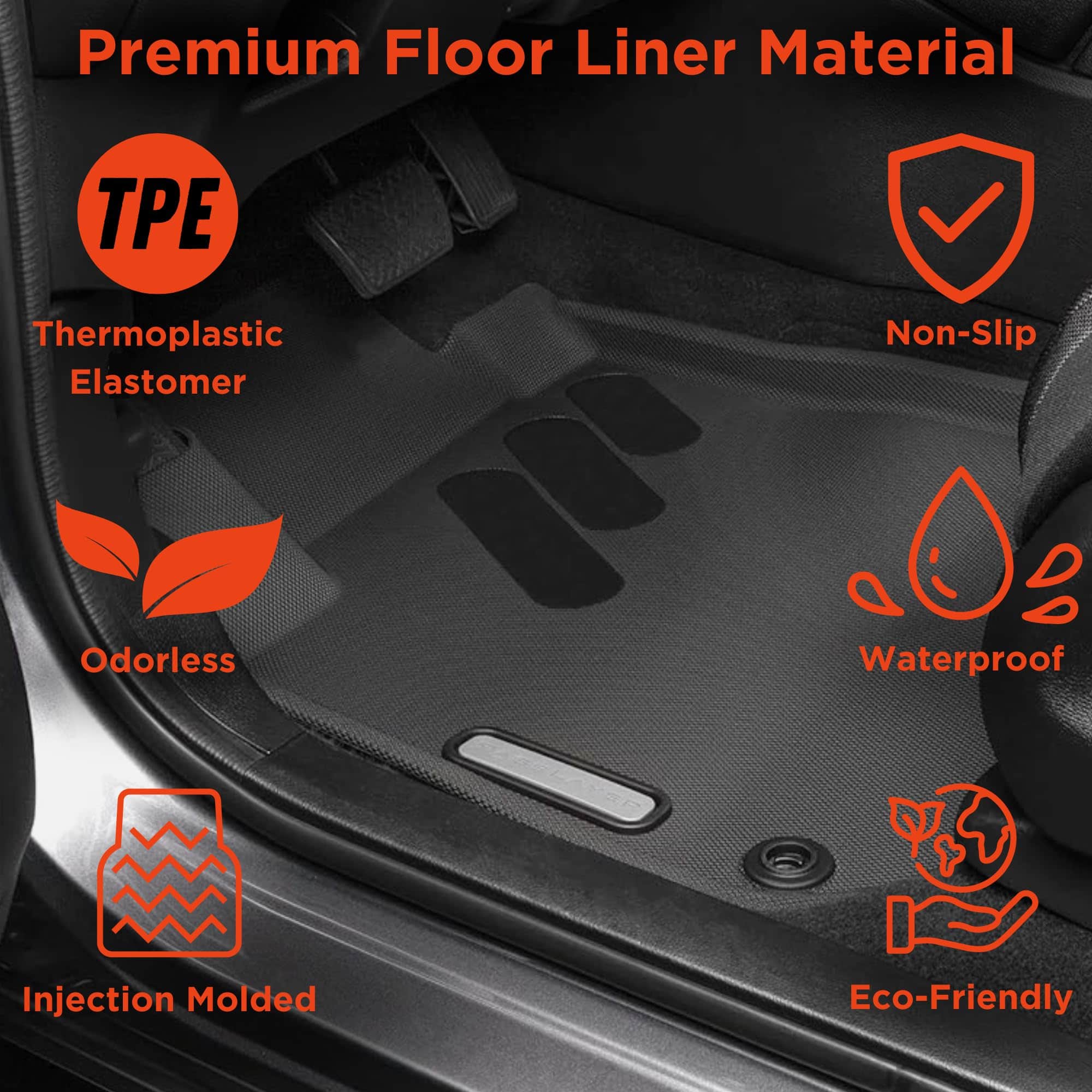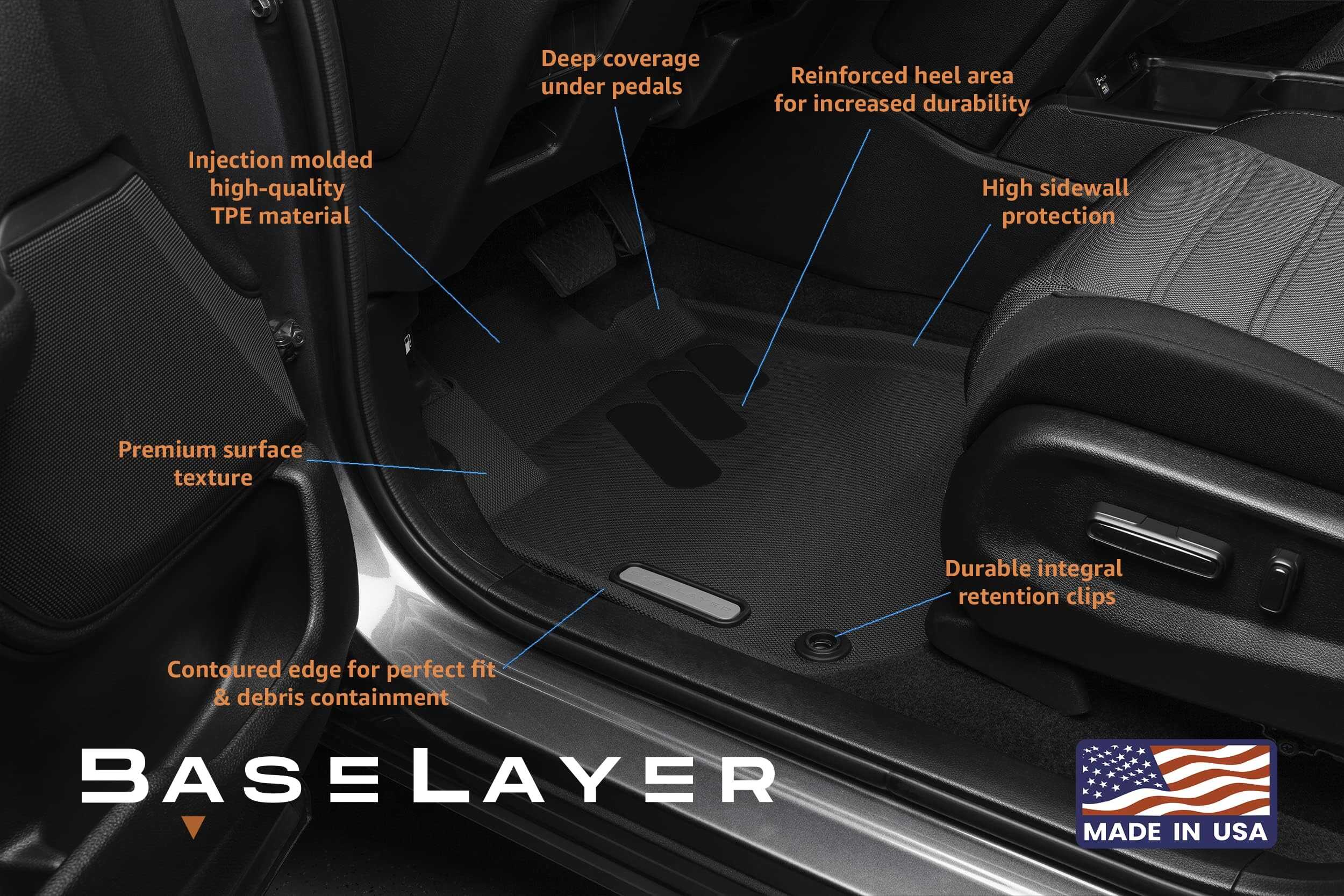 Constructed from TPE, a superior eco-friendly grade thermoplastic elastomer material, these Baselayer Honda CRV floor mats are rugged, durable, and heavy-duty with an attractive no-slip texture across the mat surface. Upgrade your vehicle’s interior with these high-quality floor mats that are proudly made in the USA.