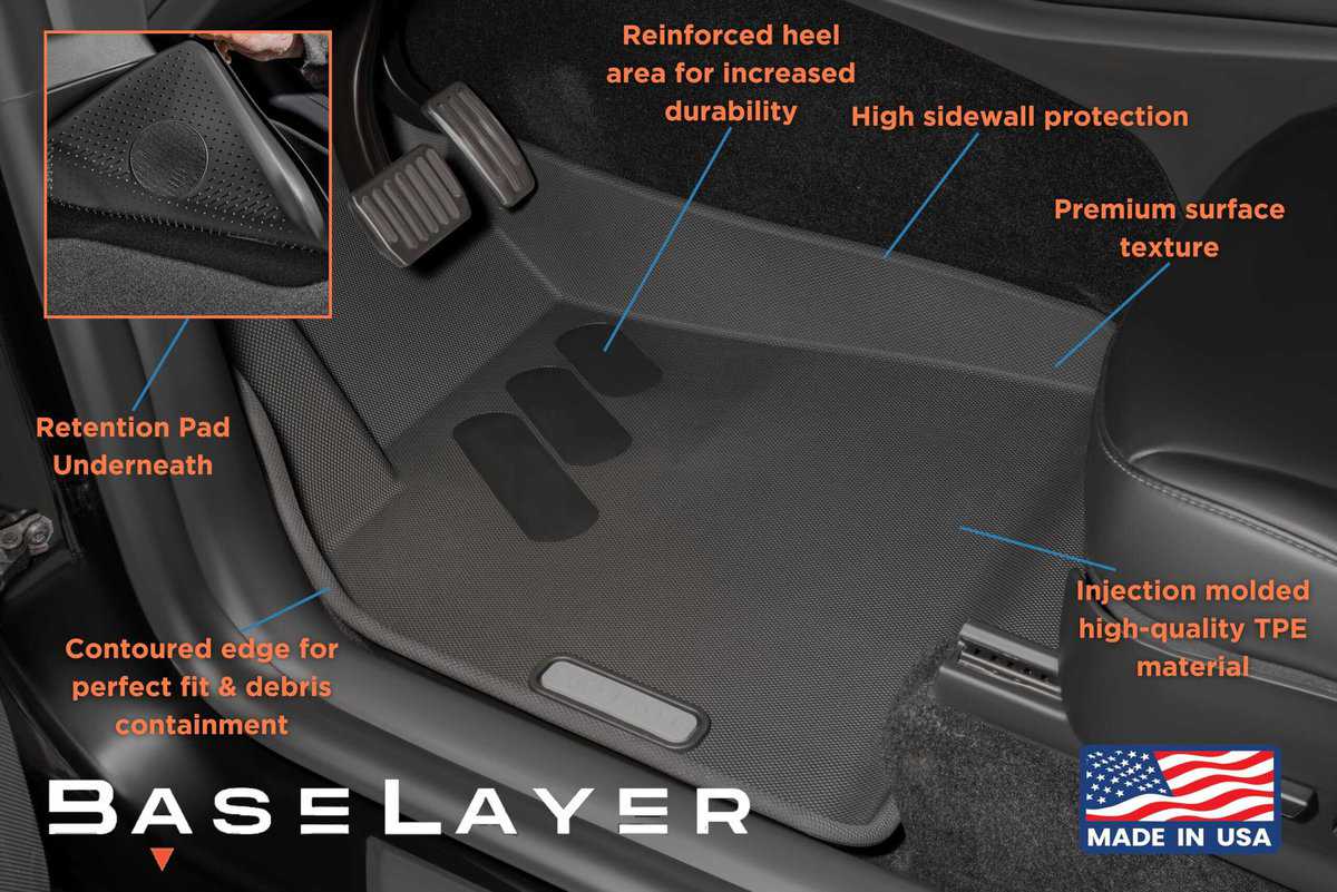 2. AJUSTE PERSONALIZADO Los accesorios interiores Baselayer del Tesla Model Y están diseñados con escaneo láser digital en 3D para un ajuste exacto al perfil del piso OEM.