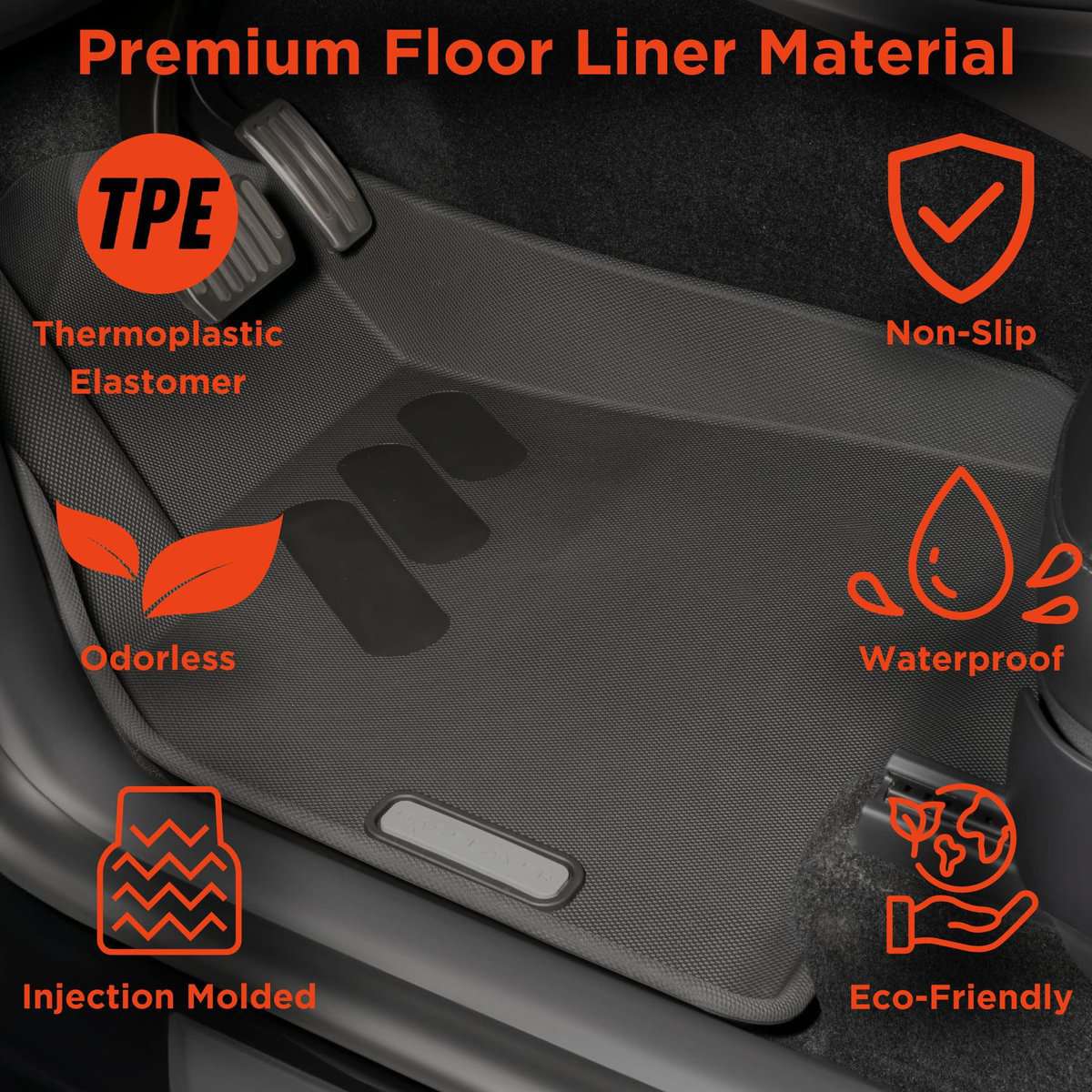 5. CALIDAD Los tapetes para el Tesla Model Y de Baselayer están moldeados por inyección de TPE, un material elastómero termoplástico de grado superior respetuoso con el medio ambiente. Robusto, duradero y resistente con una atractiva textura antideslizante en toda la superficie del tapete. Incluye. Hecho en EE. UU.