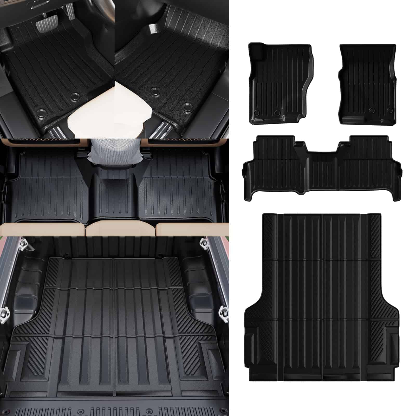 3. Material: La alfombra de cama y los tapetes están hechos de TPE (Elastómero Termoplástico) de alta calidad, con alta resistencia, elasticidad, respetuosos con el medio ambiente y sin olor. En comparación con los tapetes de goma, nuestros tapetes de TPE son más ligeros y no tienen olor.