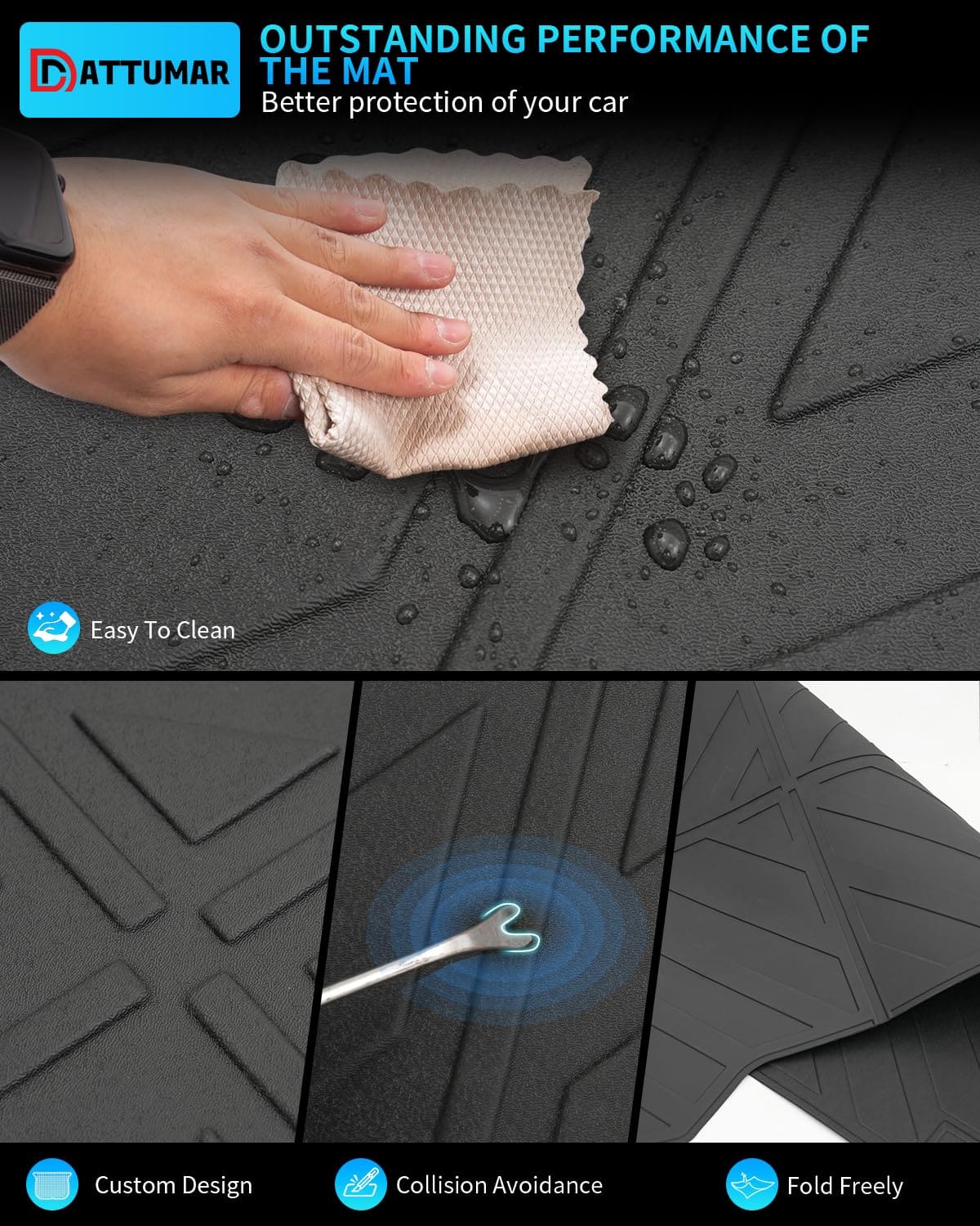 3. Material: El tapete para cama y tapetes para piso están hechos de TPE de alta calidad (Elastómero Termoplástico), con alta resistencia, elasticidad, respetuosos con el medio ambiente y sin olor. Comparado con los tapetes de goma, nuestros tapetes de TPE son más ligeros y no tienen olor.