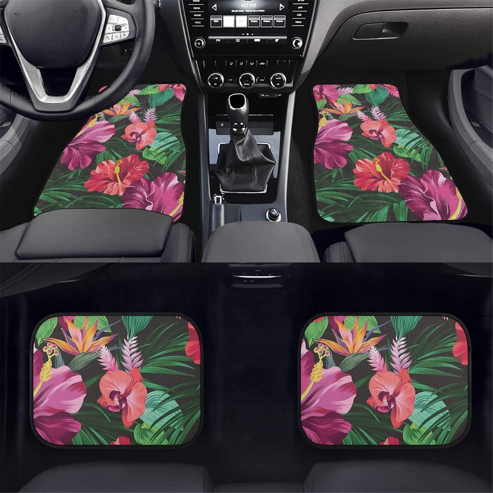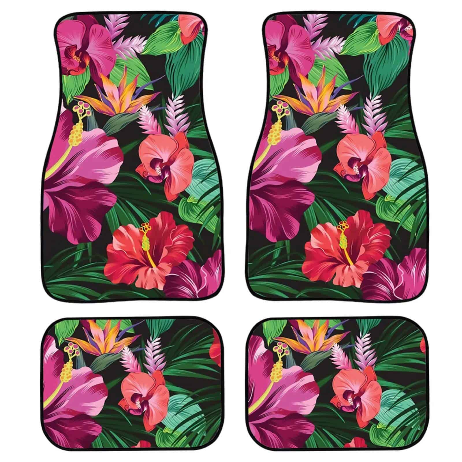 Tapetes de Auto con Diseño de Flor Tropical Hibiscus y Hoja