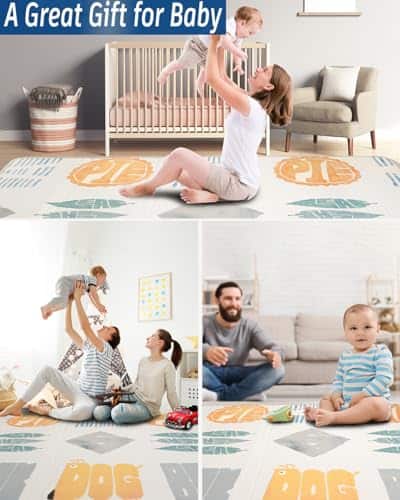 1. Tapetes de juego para bebé extra grandes con medidas de aproximadamente 79 pulgadas x 71 pulgadas de longitud y ancho, el tapete para gatear extra grande también proporciona un amplio espacio para los padres, permitiendo que padres y bebés pasen tiempo de unión feliz juntos. Su grosor de 0.8 pulgadas ofrece un excelente acolchado para proteger al bebé de pisos duros, la textura antideslizante garantiza la seguridad del bebé al aprender a caminar. 2. Tapete de juego impermeable con una superficie de tapete de espuma resistente al agua al 100%, protege el color del patrón de caer. La superficie lisa es fácil de limpiar; simplemente con un rápido paño húmedo se quita la suciedad, manteniendo un área de juego higiénica para tu pequeño. 3. Tapetes de juego no tóxicos para bebés fabricados con material XPE de alta calidad, el extra grosor ofrece un acolchado excepcional y absorción de impactos para garantizar la seguridad de tu bebé durante el tiempo de juego, lo que lo hace ideal para gatear, rodar y jugar. 4. Plegable y portátil La conveniencia se encuentra con la practicidad con nuestro diseño plegable. El tapete se puede doblar fácilmente, lo que lo hace compacto para guardar. Su portabilidad se ve reforzada por la bolsa de almacenamiento incluida, que permite un transporte y almacenamiento sin esfuerzo. Ya sea para citas de juego, siestas o salidas en familia, este grueso tapete para bebé es el compañero perfecto. 5. Gran tapete de espuma El grueso tapete para bebé es el regalo perfecto para tu bebé en cumpleaños, Navidad y Año Nuevo. Nuestra tienda tiene servicio de 24 horas al día, los 7 días de la semana, cuando recibas el producto, si tiene algún problema, puedes contactarnos directamente, te daremos una solución lo antes posible. 6. Tapete de espuma acolchado de 0.8 pulgadas para bebés Este tapete para gatear está hecho de una almohadilla de espuma de 5 pulgadas comprimida, por lo que el grosor de 0.8 pulgadas de los tapetes para tiempo boca abajo es suficiente para amortiguar cuando el niño cae, sin necesidad de poner una manta debajo.