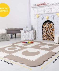 1. Hecho con amor Nuestro tapete de juego para bebés con cercas protege a tus hijos con su superficie gruesa y suave proporcionando un espacio amplio y seguro para jugar, gatear y rodar boca abajo. 61 pulgadas x 61 pulgadas Extra Grande.