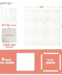 Crea un ambiente seguro y acogedor para tu bebé con este tapete de juego grande y no tóxico de Play. Diseñado en un patrón de olas neutra que se adapta a cualquier sala de juegos o guardería, este tapete para bebé ofrece una superficie suave y acolchada para que tu pequeño juegue cómodamente. Con baldosas de espuma extra gruesas de 5/8 de pulgada, este tapete proporciona un soporte superior y absorción de impactos para el tiempo boca abajo, gatear y esos adorables primeros pasos. El tapete de juego de 9 baldosas tiene un tamaño de 72 x 72 pulgadas, ofreciendo mucho espacio para la exploración y el juego, mientras que el diseño entrelazado mantiene las baldosas en su lugar de forma segura. Hecho de espuma EVA certificada no tóxica, este tapete de juego para bebés está libre de BPA, ftalatos, plomo y PVC, lo que lo hace seguro para tus pequeños. Su construcción duradera y resistente al agua garantiza años de diversión en el tiempo de juego. Propiedad de Veteranos de EE. UU., Play Platoon se enorgullece de ofrecer productos de alta calidad para tus pequeños y está comprometido a brindar un excelente servicio al cliente para garantizar tu satisfacción.