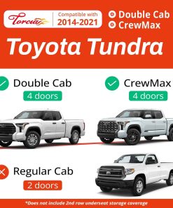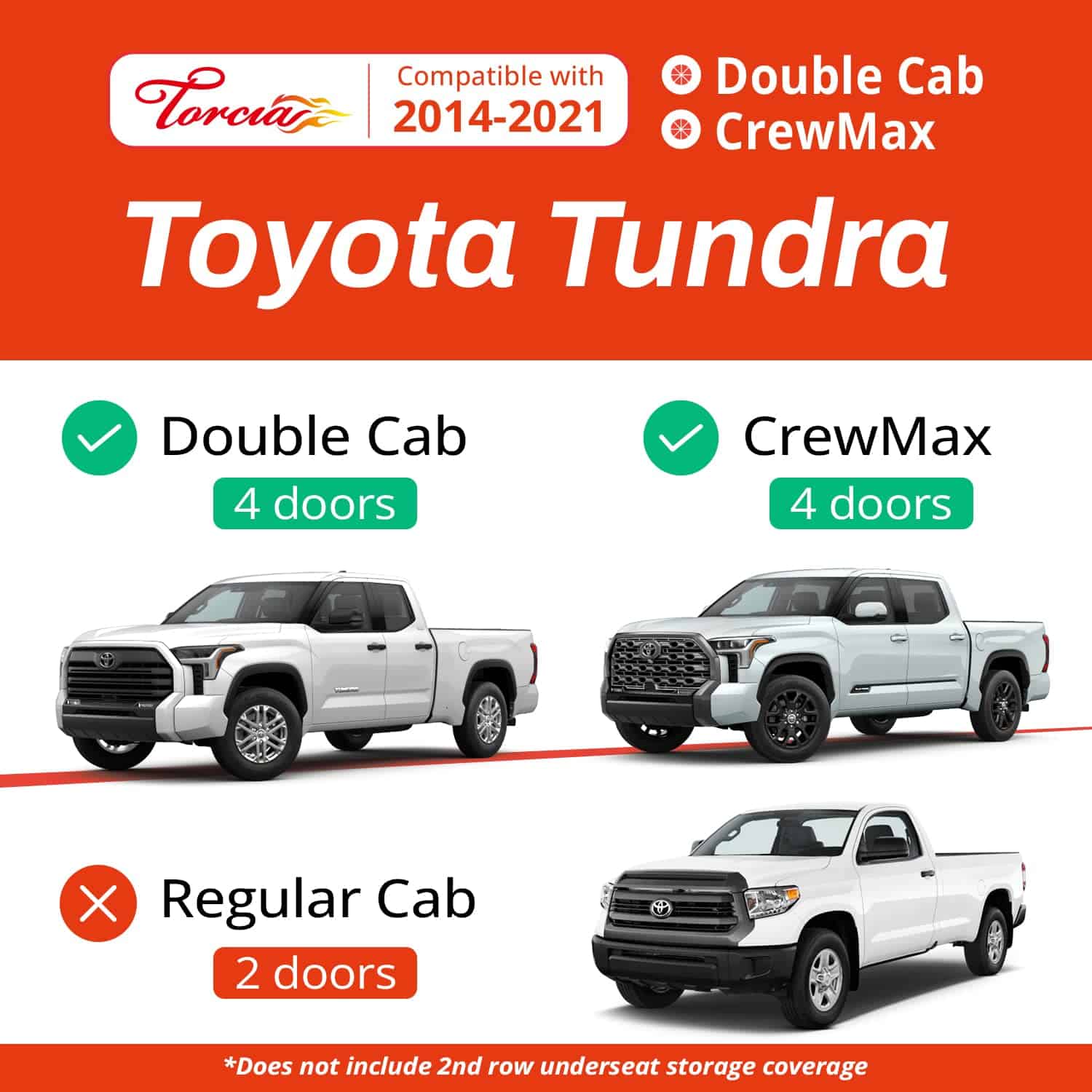 1. Ajuste perfecto 3D-Scan: Los tapetes Torcia están hechos a medida para Toyota Tundra 2014-2021. Compatible con Double Cab & Crew Max Cab, no incluye cobertura para el almacenamiento debajo del asiento de la 2da fila.