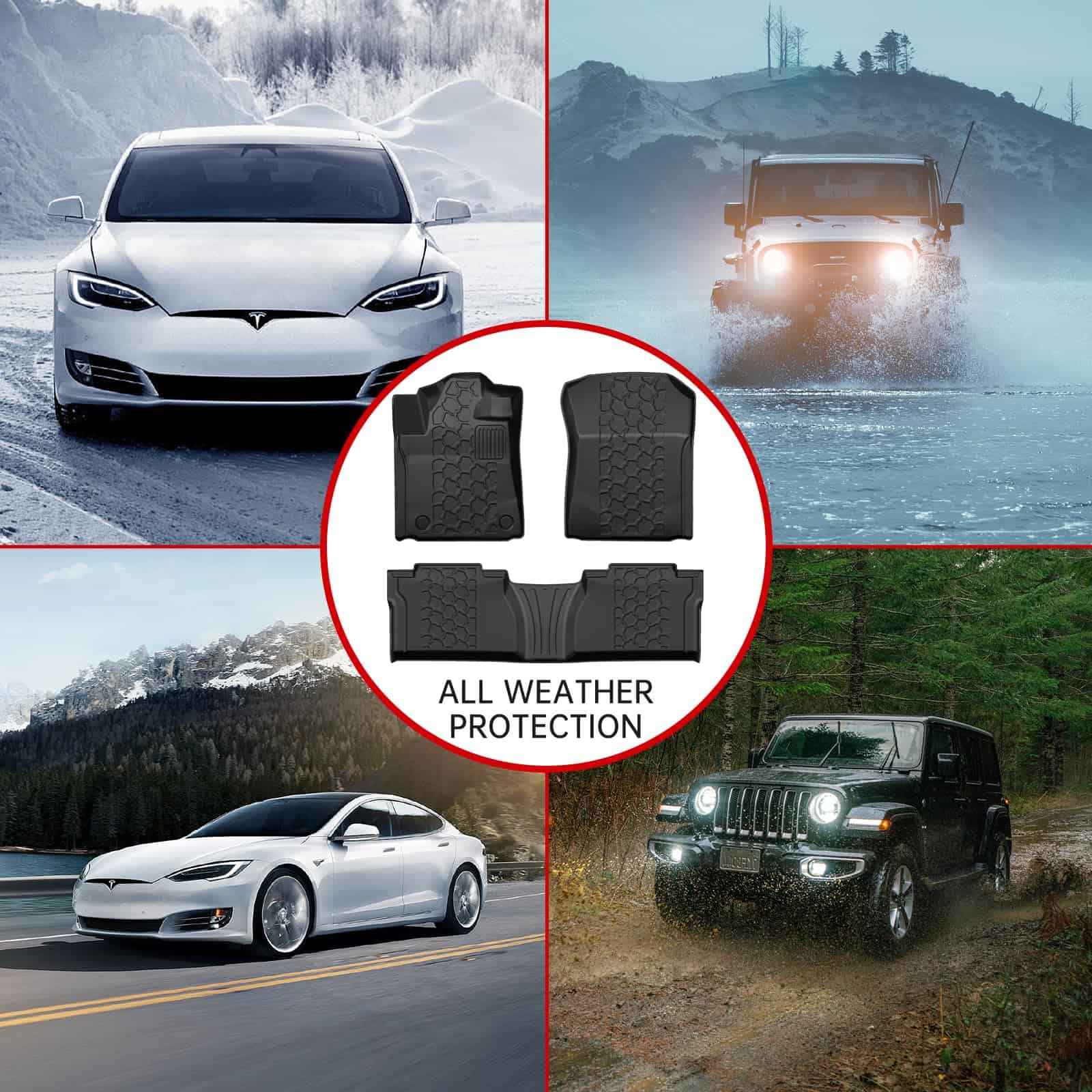 2. Protección todo clima: Los tapetes Torcia están listos para resistir la lluvia, la nieve, el barro y los derrames, protegiendo tu automóvil de lo que sea que la vida te depare, bordes elevados y surcos profundos contienen todo tipo de desorden.