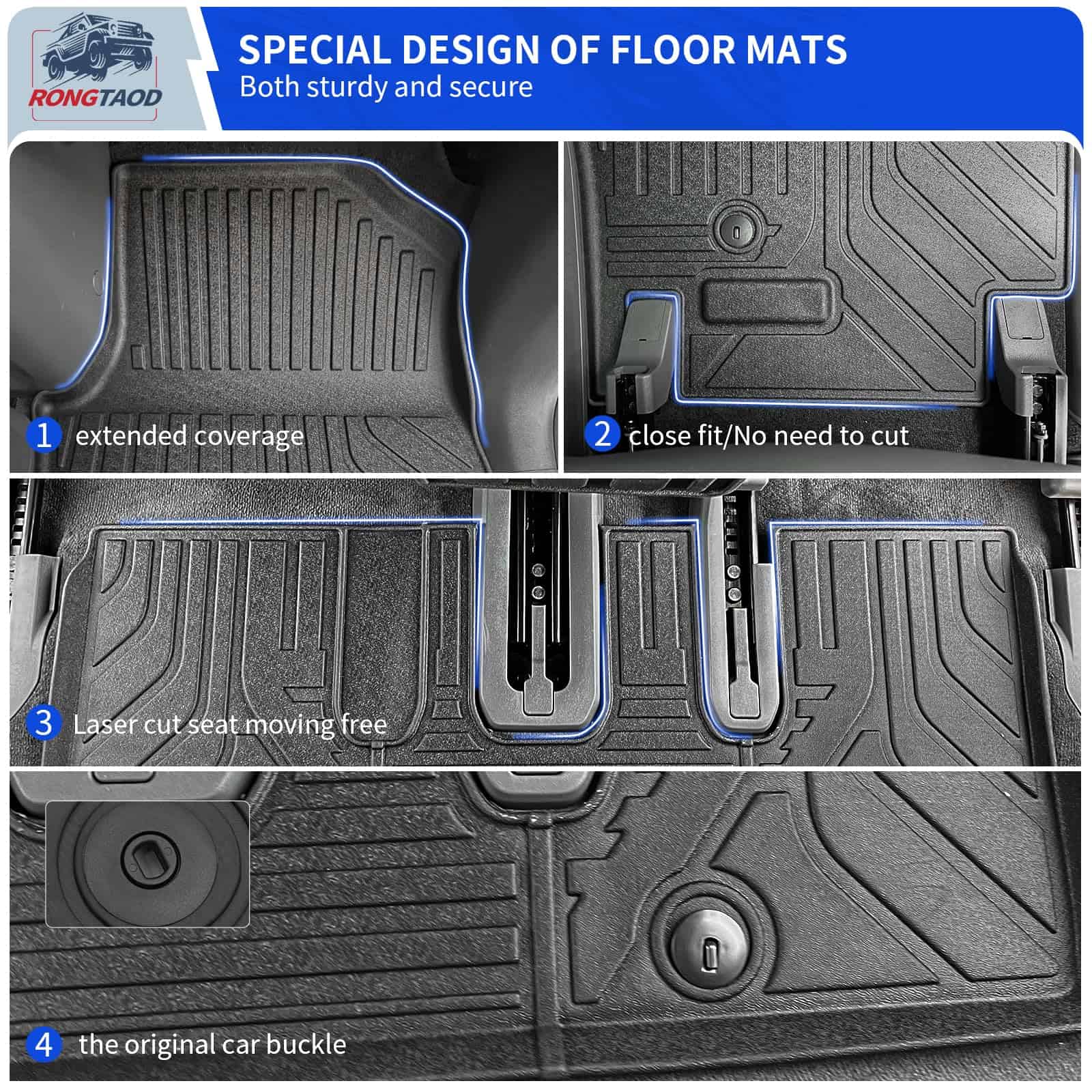 3. Material: Nuestras alfombrillas están hechas de TPE de alta calidad, resistente al calor y a los arañazos. Este tipo de material es ecológico y saludable, no representa una amenaza para la salud de los pasajeros en el automóvil.