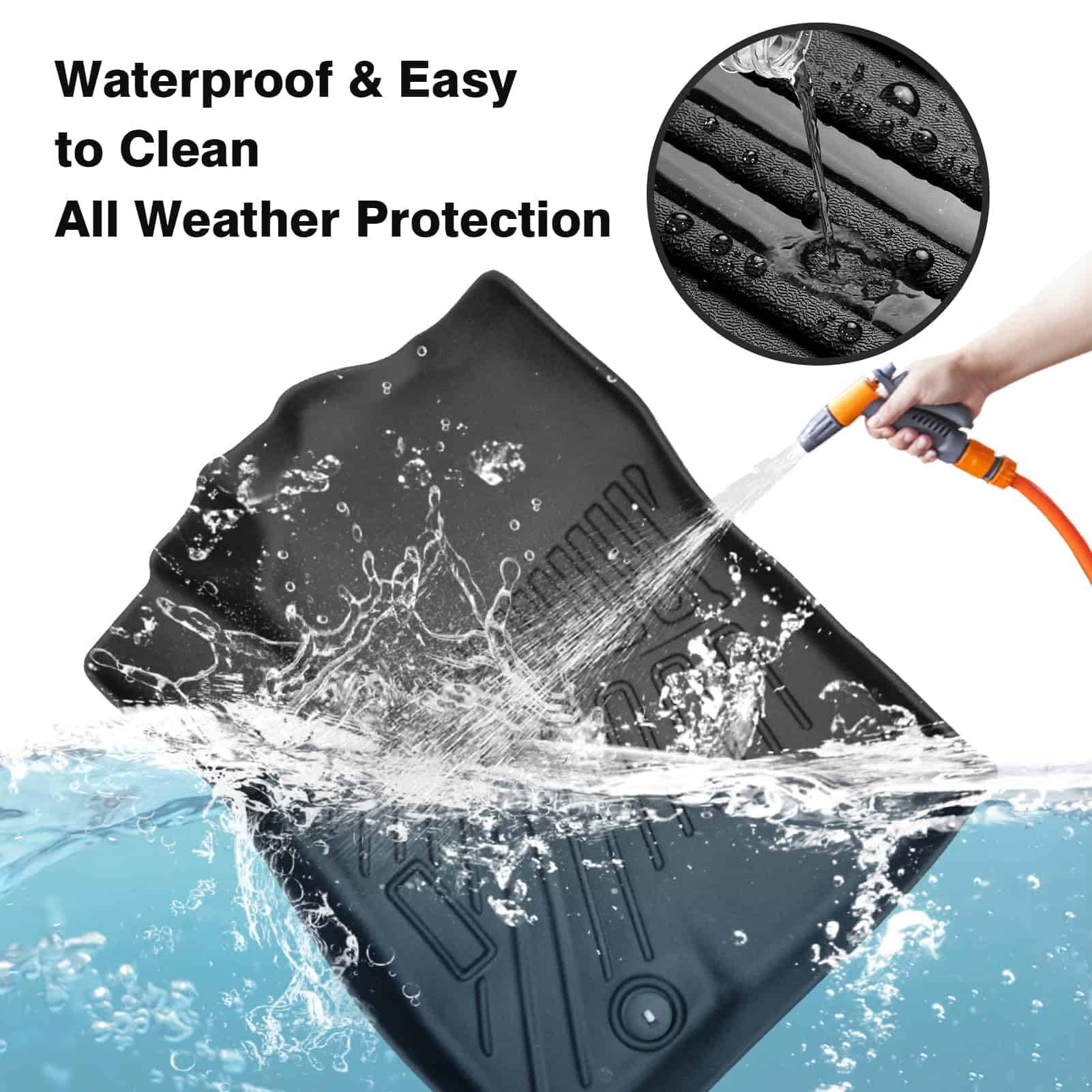 3. Tapete de Piso para Todo Clima: Estos forros de piso ofrecen protección contra variables exteriores (como barro, líquidos y nieve) y prolongarán la vida de tu interior en todo tipo de clima (lluvia, niebla, nieve, etc). Nuestros tapetes de piso se limpian fácilmente al limpiar con un paño húmedo, enjuagar o simplemente usando jabón y agua para la suciedad resistente.