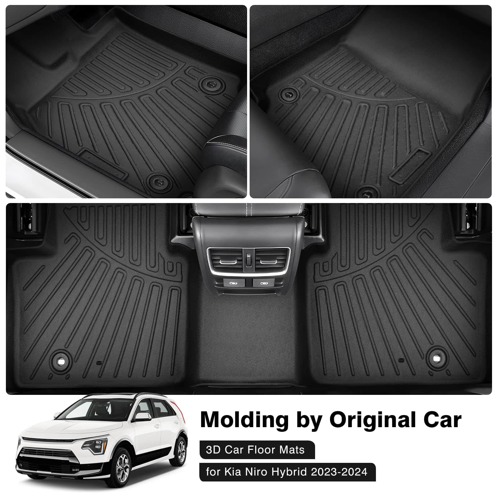 1. Ajuste perfecto: Estos tapetes de piso estan diseñados especialmente para Kia Niro Híbrido 2023-2024. El forro de piso esta hecho por escaneo láser digital de precisión 3D para proteger el espacio de tus pies del coche. Estilo moderno y durable.