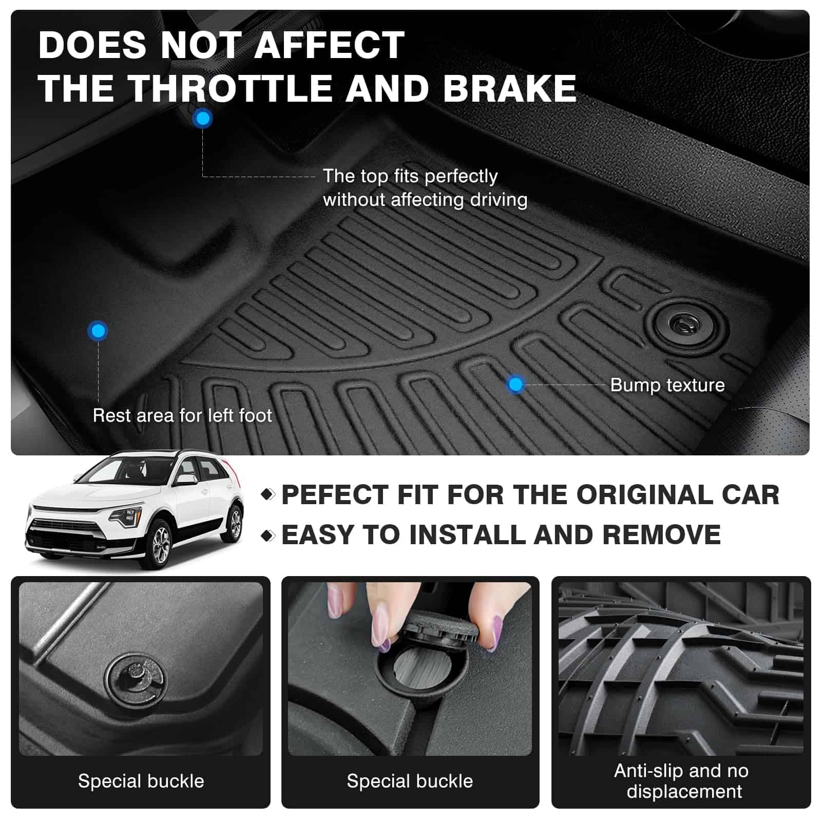4. Fácil de Limpiar Tapete de Piso 3D: Diseño de borde alto para una efectiva resistencia al polvo y al agua, sin fugas y desmontable. Hebilla de coche original, estable sin desplazamiento, no interfiere con el acelerador, Hace que la conducción sea más segura.