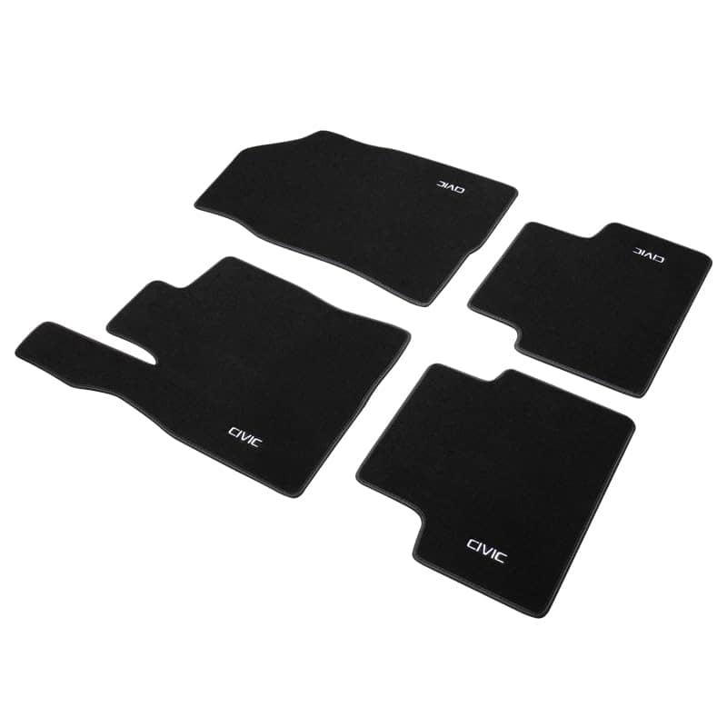Custom Fit for Honda Civic 2016-2021: These original black carpet car floor mats are precisely designed to fit Honda Civic models from 2016 to 2021, ensuring a perfect integration with your vehicle’s interior. Their precise fit provides complete floor coverage, protecting against dirt and wear with an elegant look.