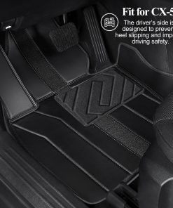 Protección Todo Clima: Este conjunto de cinco piezas de tapetes de piso para todas las estaciones protege los pisos de su coche de la suciedad y los desechos. Diseño de bandeja profunda que retiene agua, nieve, barro y sal de carretera.