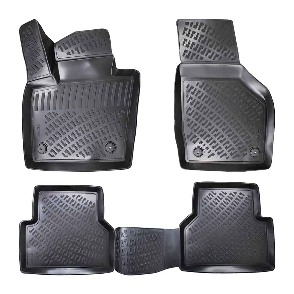 Un tapete a medida se fabrica específicamente para cada modelo de vehículo. Contorneará perfectamente los piso del vehículo y proporcionará una cobertura y protección completa del tapete. El tapete a medida ofrece la protección perfecta para el piso del vehículo. Desde su introducción en el mercado automotriz, el tapete a medida se ha convertido en un accesorio aftermarket muy popular. El tapete a medida a menudo presenta un ajuste moldeado, bordes elevados y cobertura de piso de puerta a puerta específicos de la marca, modelo y año del vehículo. Asegura que cada rincón del piso del vehículo esté protegido. Los bordes exteriores del tapete a medida tienen labios elevados donde se atrapan los desechos y líquidos derramados en el vehículo. El tapete a medida también presenta crestas elevadas con patrones especializados que canalizan la humedad y el agua lejos de donde descansan los pies.