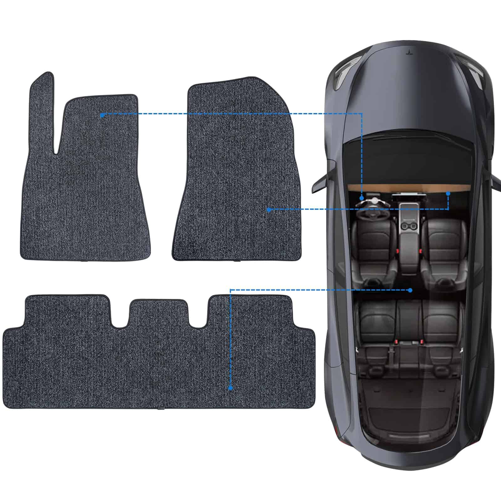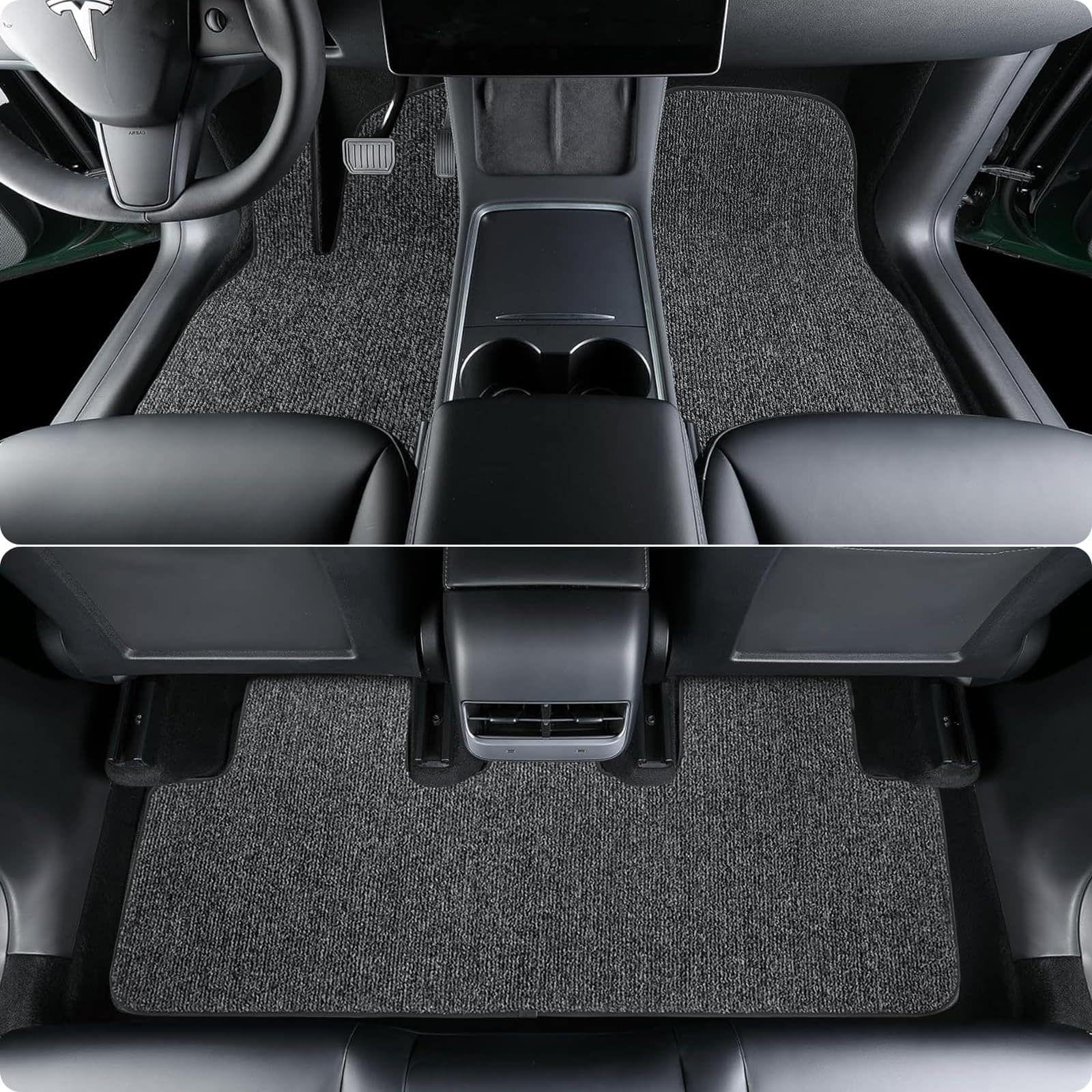 1. TAPETE DE COCHE TESLA: Hecho de poliéster superior y respaldo duradero de TPR, los tapetes para pisos Vogense están diseñados para Tesla Model 3 y Model Y. Juego de 3 (2 delanteros + 1 trasero) y juego de 6 (2 delanteros + 1 trasero + 1 frunk + 1 baúl trasero + 1 sub baúl) para elegir.