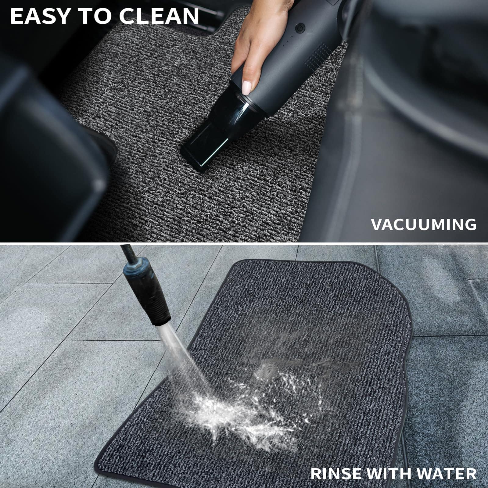 4. FÁCIL DE LIMPIAR: Simplemente retire la alfombra para automóvil del coche, enjuague con agua y déjelas secar al aire, o use una aspiradora para deshacerse de la suciedad y los escombros.