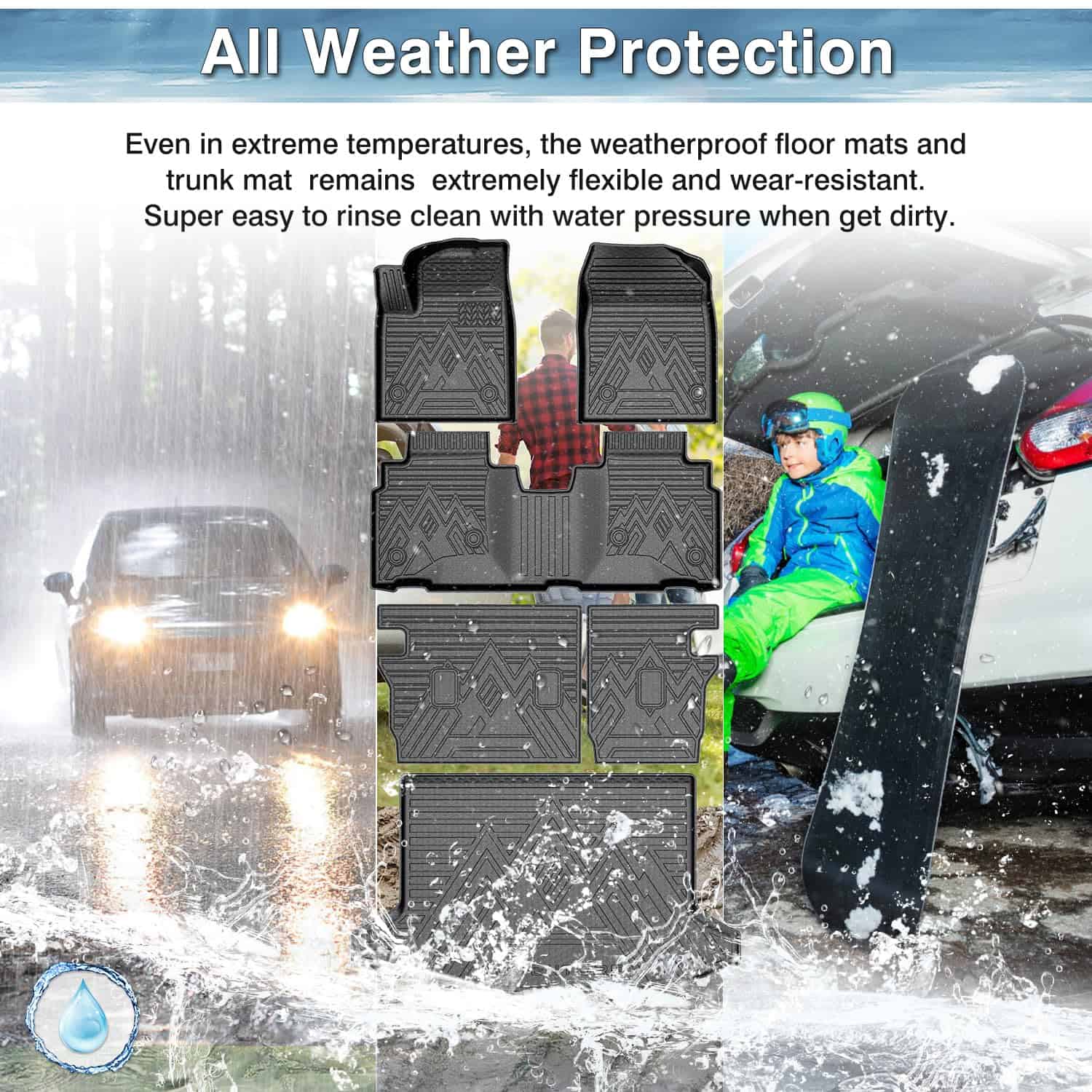 Material TPE duradero de alta calidad y seguro para todas las estaciones: El tapete de tronco y los tapetes de piso están hechos de materiales TPE resistentes de primera calidad, resistentes al desgaste, antideslizantes y sin olor. El material TPE de alta densidad y seguro mantiene su flexibilidad en todas las estaciones, ofreciendo aún un excelente tacto y una resistencia extrema al desgaste.