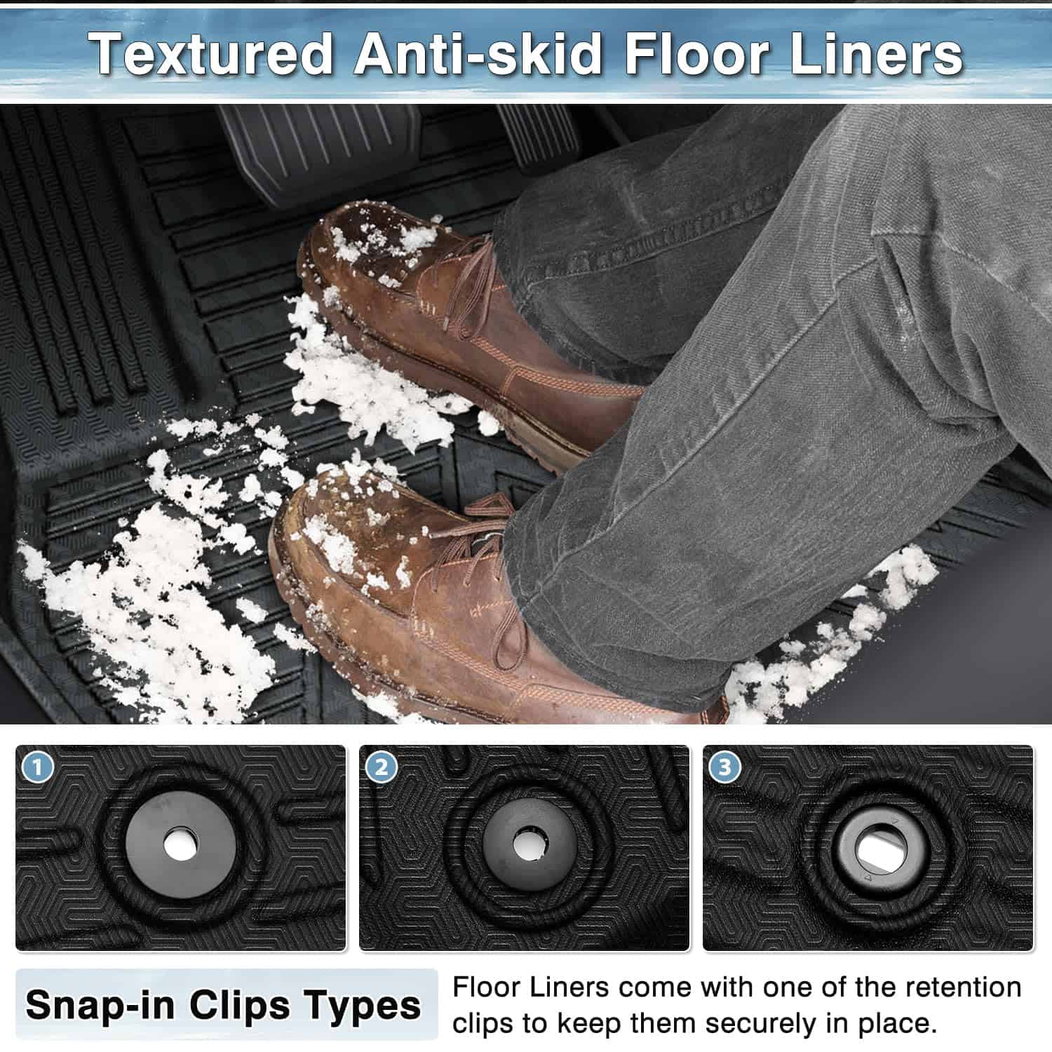 Antideslizante y atrapa desechos: El tapete de tronco y los tapetes de piso con textura antideslizante pueden evitar que los objetos se deslicen durante el viaje. El tapete de tronco y los tapetes de piso a prueba de agua tienen canales únicos que pueden atrapar efectivamente arena, agua, lodo, suciedad, lluvia y barro.