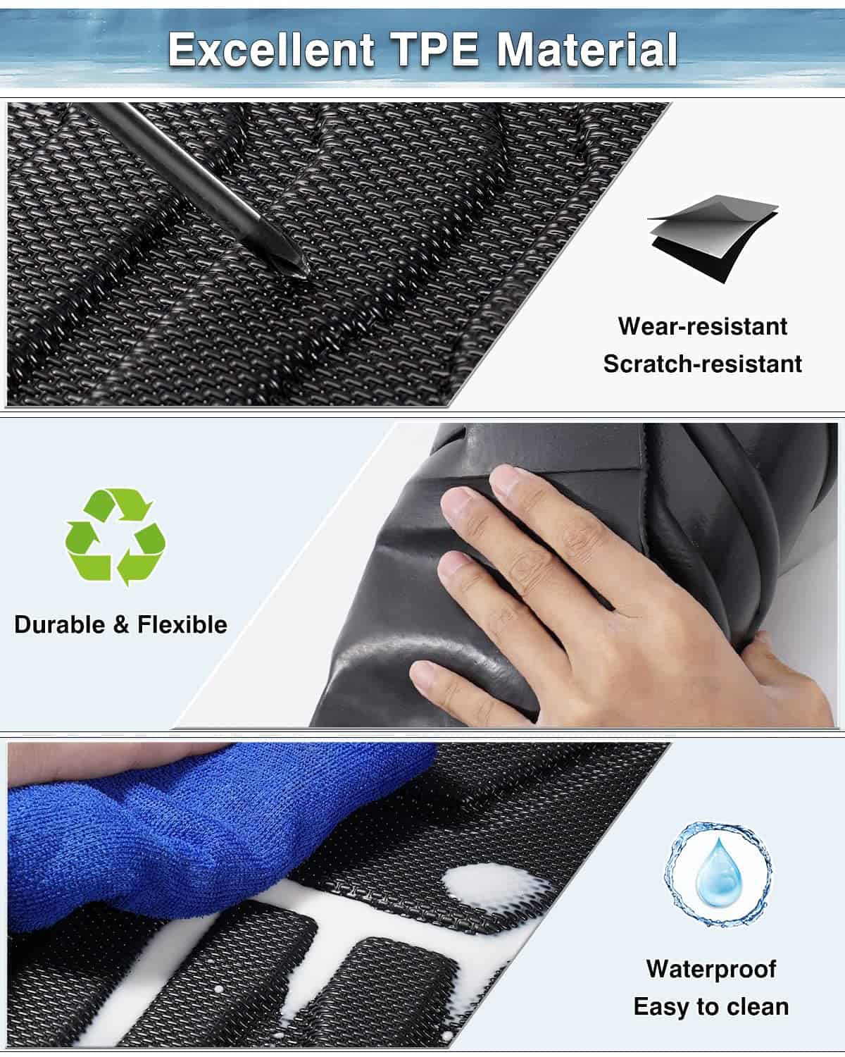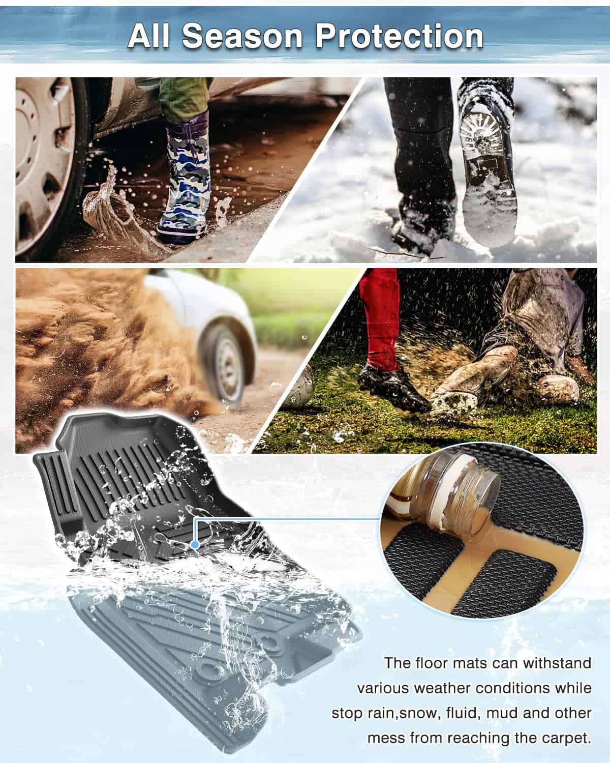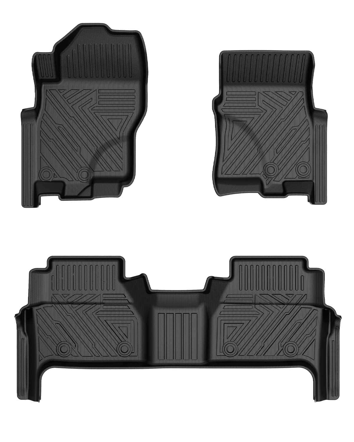 Tapetes de Piso Mixsuper son compatibles con Nissan Frontier Crew Cab 2022-2024 con Almacenamiento bajo el Asiento de la 2da Fila. Están hechos de materiales TPE que son impermeables, duraderos, resistentes al desgaste, antideslizantes y sin olor. El material TPE de alta tensión y seguro mantiene su flexibilidad en todas las estaciones mientras ofrece una excelente sensación y resistencia extrema al desgaste. Los tapetes de piso texturizados y antideslizantes garantizan la seguridad al conducir. Además, están diseñados con canales únicos para atrapar eficazmente arena, agua, lodo, suciedad, lluvia, barro y cualquier otro desorden. Los bordes elevados alrededor de los tapetes evitan que líquidos y desechos lleguen al piso original. Fácil de limpiar: los tapetes impermeables se pueden limpiar simplemente pasando un trapo, con agua a presión o usando agua y jabón. Atención: los tapetes de piso vienen doblados para el envío. Colóquelos bajo el sol para ayudar a quitar las arrugas.