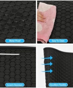 Este pesado tapete de goma protege el interior de su vehículo. El producto se puede usar en todas las estaciones, el material de goma resistente y las líneas profundas en la superficie pueden proteger su auto de la lluvia, la nieve y el lodo. El tapete tiene una fuerte adherencia, puede ser estable y no se desplaza fácilmente.