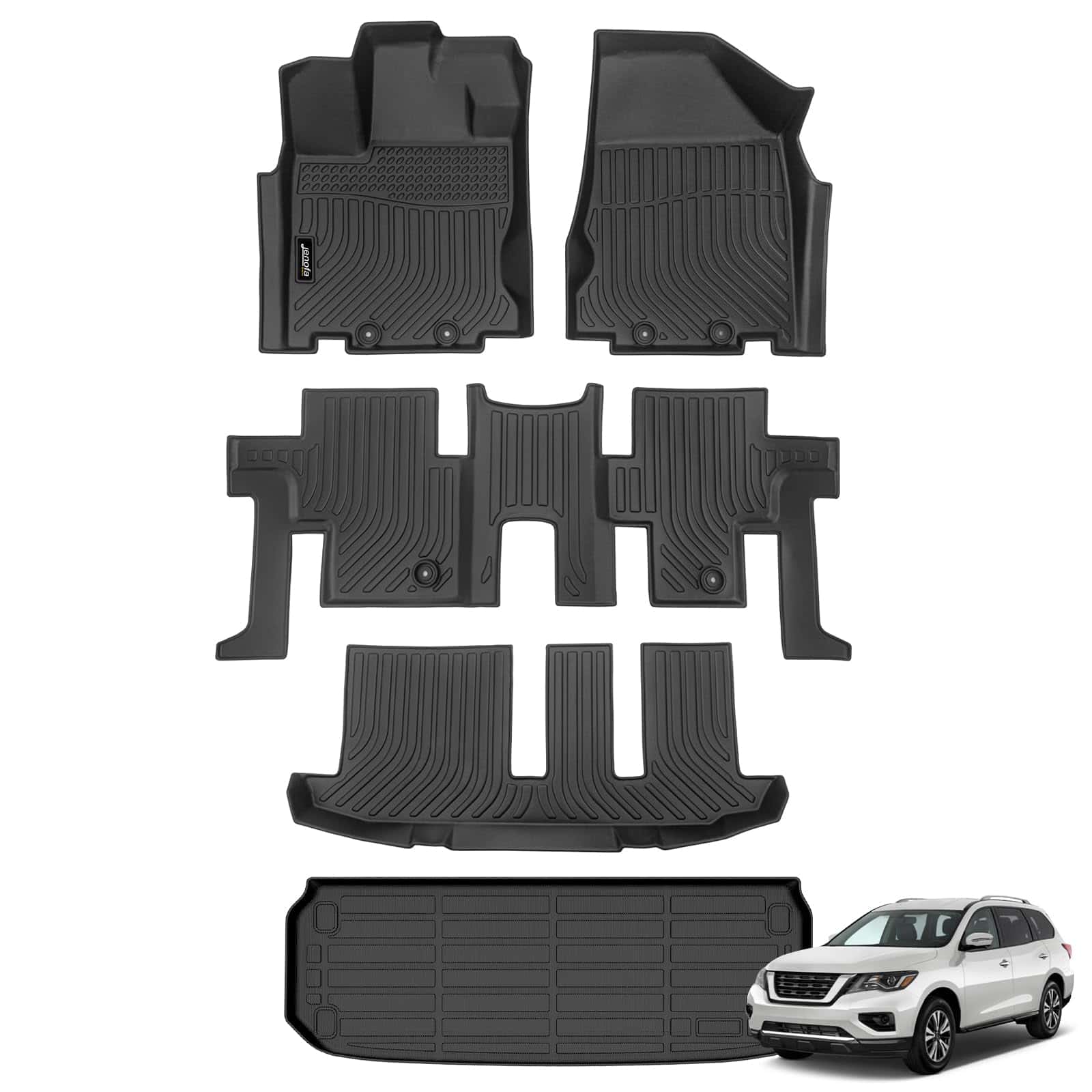 2. Materiales Premium: Los tapetes y tapetes de carga de Jenofa para Pathfinder están construidos con materiales de elastómero termoplástico (TPE) de alta calidad, ofreciendo un equilibrio perfecto entre suavidad y durabilidad. No hay necesidad de preocuparse por las arrugas causadas por el envío después de recibir el tapete, simplemente coloque el tapete en un lugar cálido (o use un secador de pelo) y su forma personalizada se restaurará.