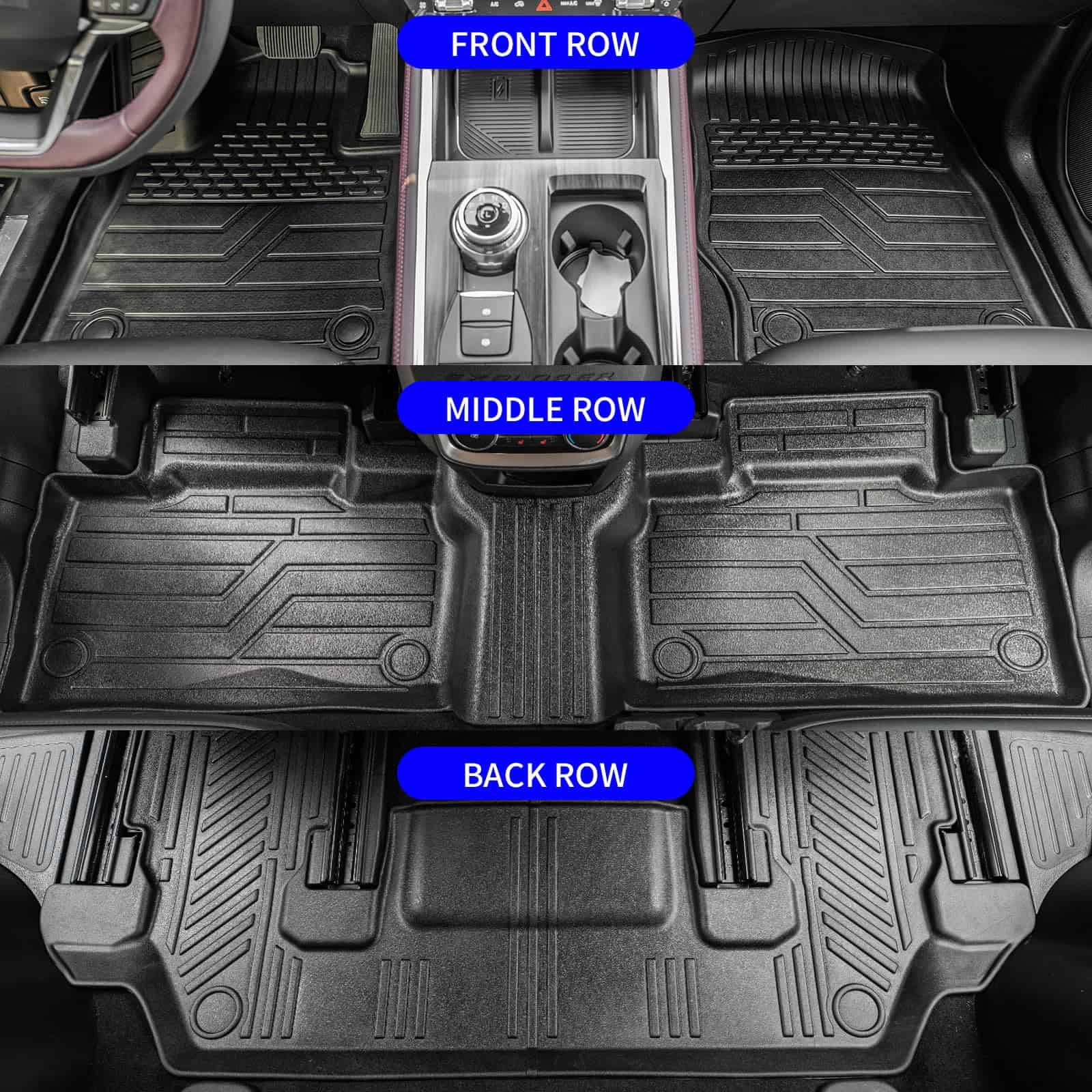 1. Compatibilidad: Este conjunto (Tapete para maletero con respaldos de asientos + Tapetes para piso) es adecuado para el Ford Explorer de 6 pasajeros a partir de 2020 hasta 2025. Nota especial: el tapete para maletero con respaldo de asiento está disponible para 6 y 7 asientos. Si su auto tiene 7 asientos, la posición central de la tercera fila del reposapiés será más corta. Si no le importa, también puede comprarlo y usarlo.