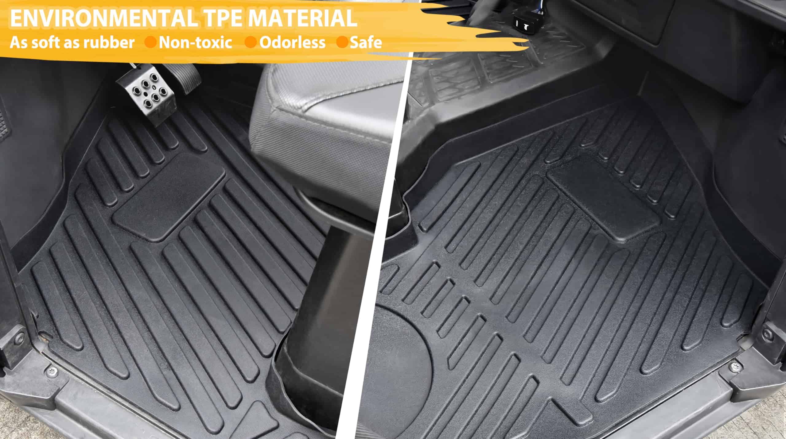 Compatible con Polaris Ranger XP 1000 2018-2024 y Ranger Crew XP 1000 2018-2024 para piso delantero (Consulte la lista de compatibilidad en la descripción). Fabricado por un escaneo láser digital de precisión único; Forra completamente y con precisión la alfombra interior. Mantenga el piso original de su vehículo en perfectas condiciones con estos duraderos Tapetes de Piso; Cuenta con una superficie texturizada y antideslizante. La composición triextruida de TPE garantiza 100% segura, 100% inodora y respetuosa con el medio ambiente en todas las condiciones climáticas (lluvia, niebla, nieve, etc.), que proporciona un excelente agarre resistente y duradero. El TPE tiene una resistencia a la temperatura 3 veces mejor que el PVC, no es tóxico, inodoro, no contiene látex, cadmio, plomo ni ningún PVC dañino. No solo se siente agradable y extremadamente resistente al desgaste, sino que también permanece flexible en clima frío. Es fácil de limpiar y no se desprende, no acumula manchas ni residuos, y si está sucio, simplemente quite el forro del piso de su Ranger y límpielo con una manguera