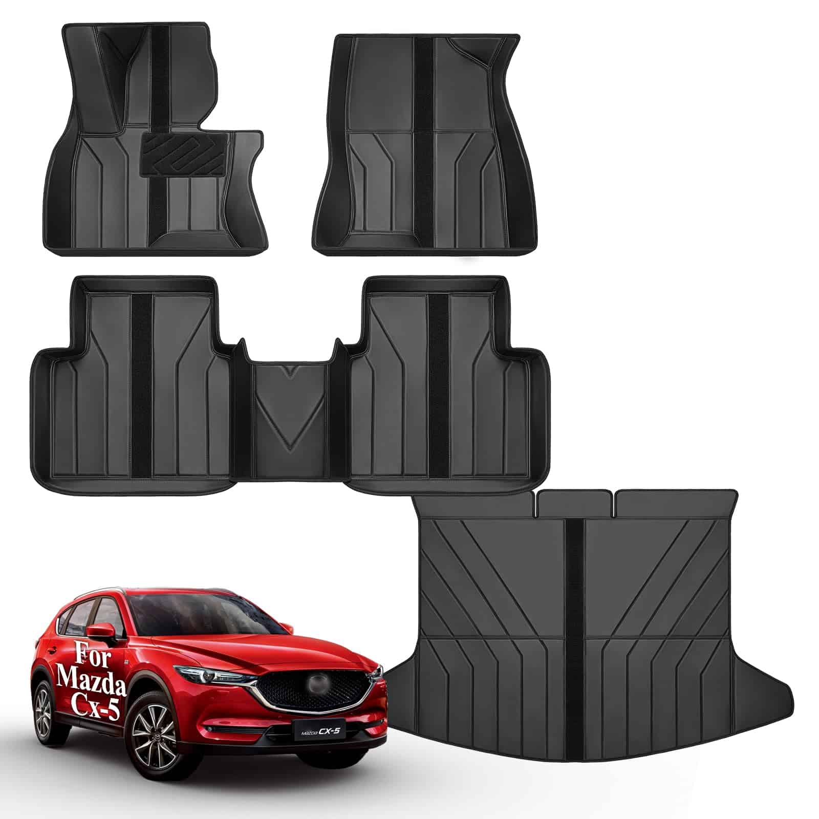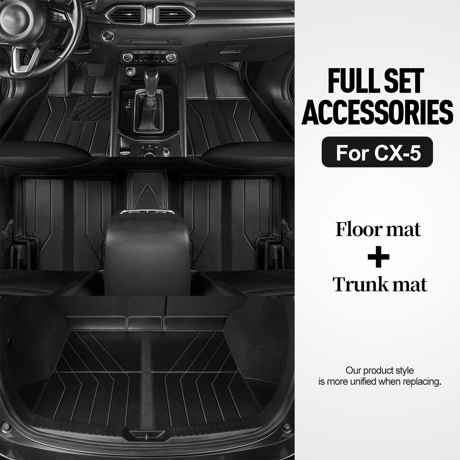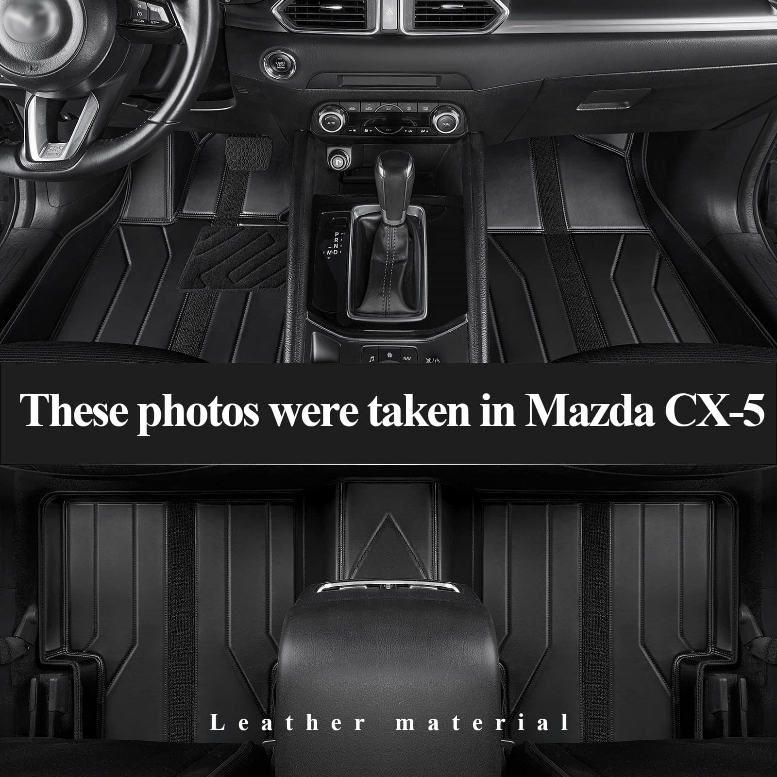 1. Los tapetes están diseñados para Mazda CX-5: los tapetes se ajustan perfectamente a Mazda CX-5 2017-2023. Utilizamos tecnología de escaneo láser de alta precisión, los tapetes para coche ofrecen una cobertura máxima en comparación con los tapetes para coche OEM y universales. La altura de los tapetes para coche es de aproximadamente 5 pulgadas, por lo que los tapetes pueden proteger más que otros tapetes. El refuerzo para el talón del lado del conductor está diseñado para evitar resbalones y mejorar la seguridad al conducir. 2. MATERIAL DE CALIDAD: los tapetes para coche están hechos de tres capas combinadas con tecnología de prensado en caliente. La primera capa es de cuero de alta calidad, el cuero es duradero y muy fácil de limpiar, la segunda capa es de esponja, la esponja es ligera y suave con una pisada cómoda. La capa inferior son espinas blandas, las espinas suaves hacen que los tapetes para coche y el suelo del coche se fijen y no se muevan. 3. MATERIAL SALUDABLE: los tapetes para coche están hechos de material respetuoso con el medio ambiente, por lo que son completamente no tóxicos e inodoros. Por lo tanto, no puedes oler el olor a goma. 4. FÁCIL DE LIMPIAR: los tapetes para coche son fáciles de limpiar e instalar. Las espinas suaves hacen que los tapetes no se muevan en el coche. Puedes limpiar los tapetes con agua, entonces los tapetes se verán bonitos y nuevos otra vez. 5. GARANTÍA DE SATISFACCIÓN 100%: si no estás satisfecho con los tapetes para coche, simplemente devuélvelos para obtener un reembolso completo en 30 días.