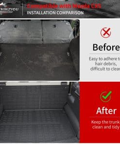 1. Ajuste: De acuerdo al automóvil original, nuestro protector de maletero, tapetes del respaldo y tapetes del piso son adecuados para el Mazda CX5 2023 2024 2025.