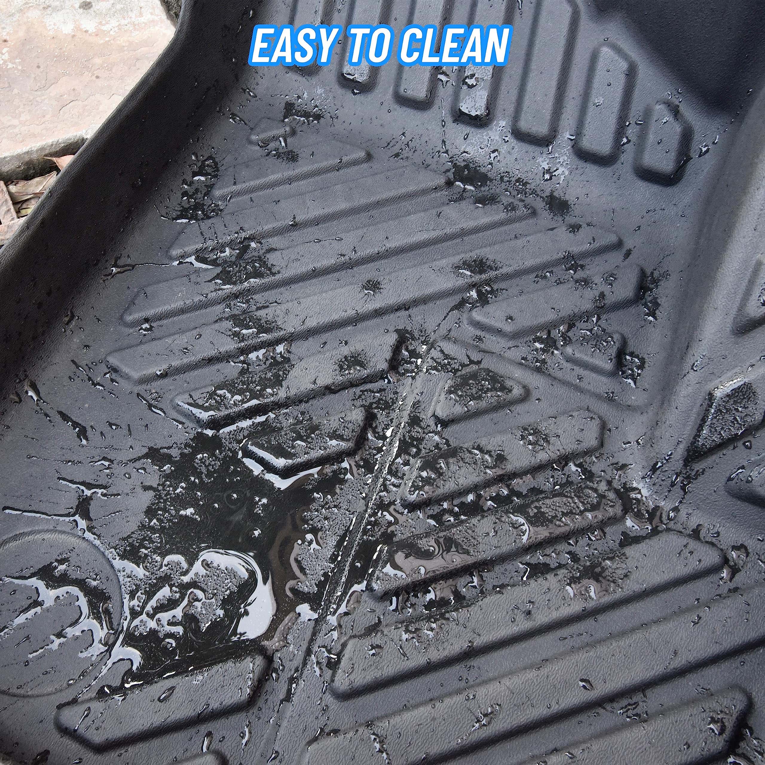 4. ANTIDESLIZANTE Y FÁCIL DE LIMPIAR – Funciona bien con el vehículo, asegúrate de sujetar firmemente la alfombra y mantener los tapetes en su lugar, no se desplazarán, mantén la estabilidad durante la conducción y asegura tu seguridad al conducir; Diseño elevado tridimensional, no acumulará manchas, y si está sucio, simplemente retire el forro de piso de su vehículo y límpielo con una manguera.
