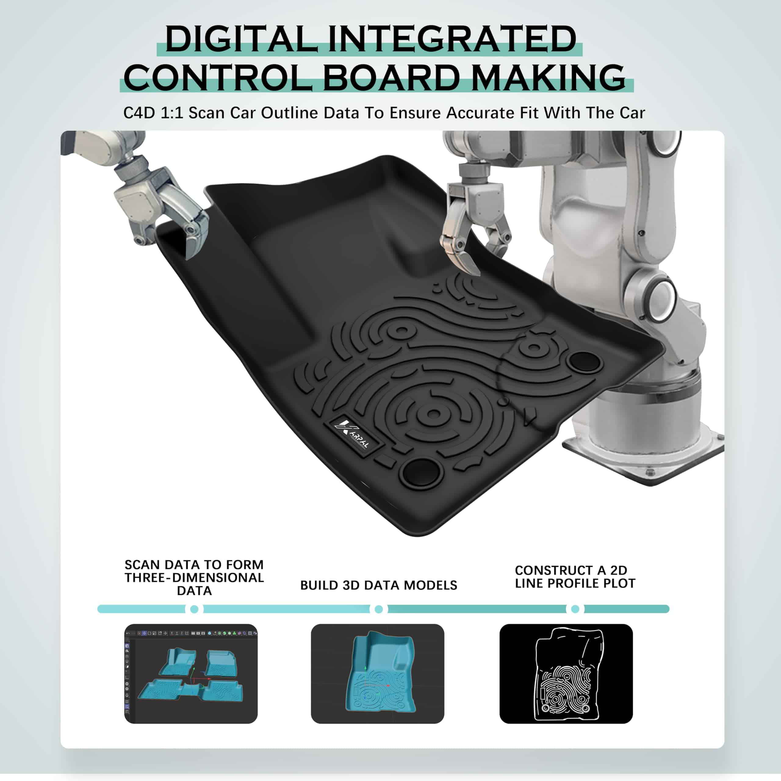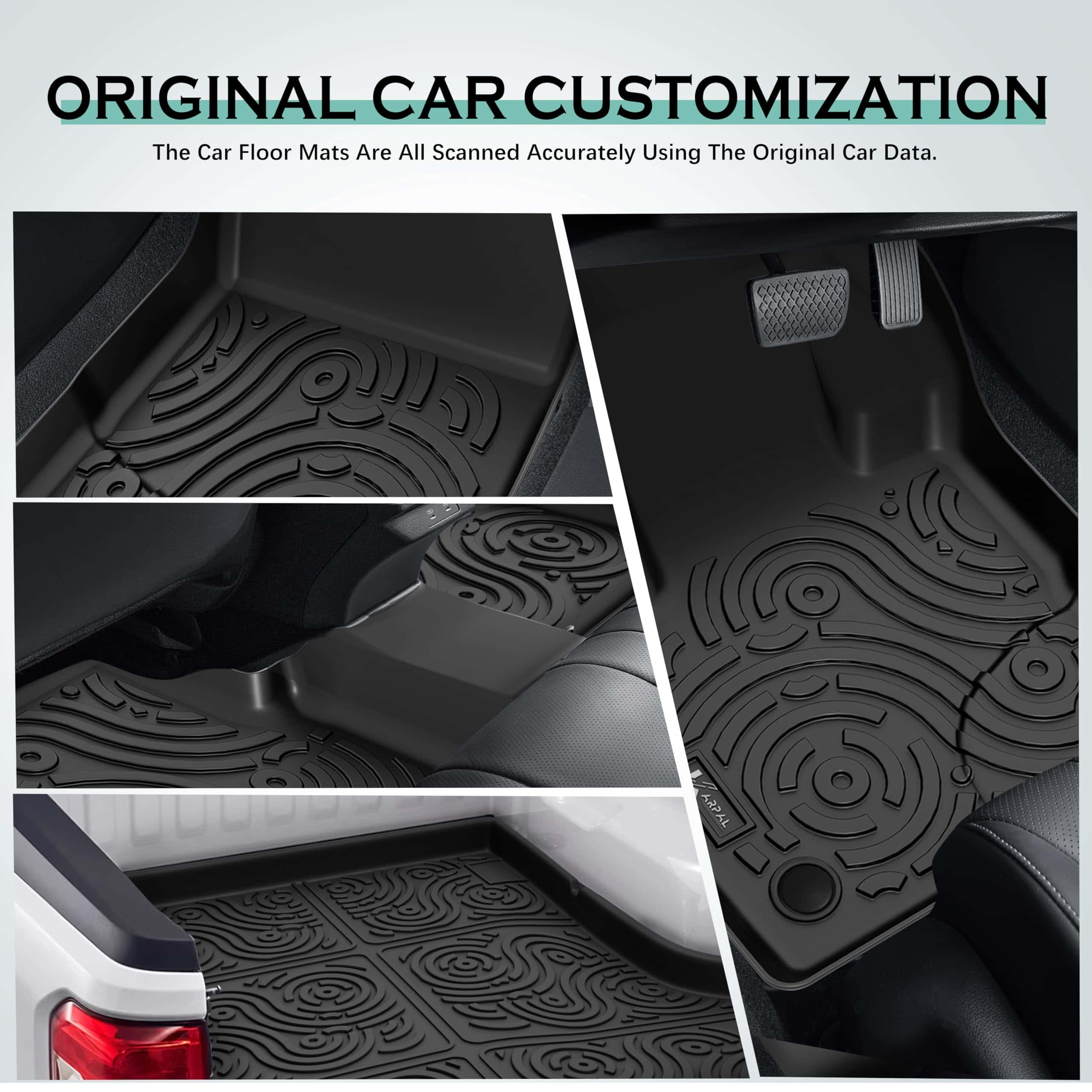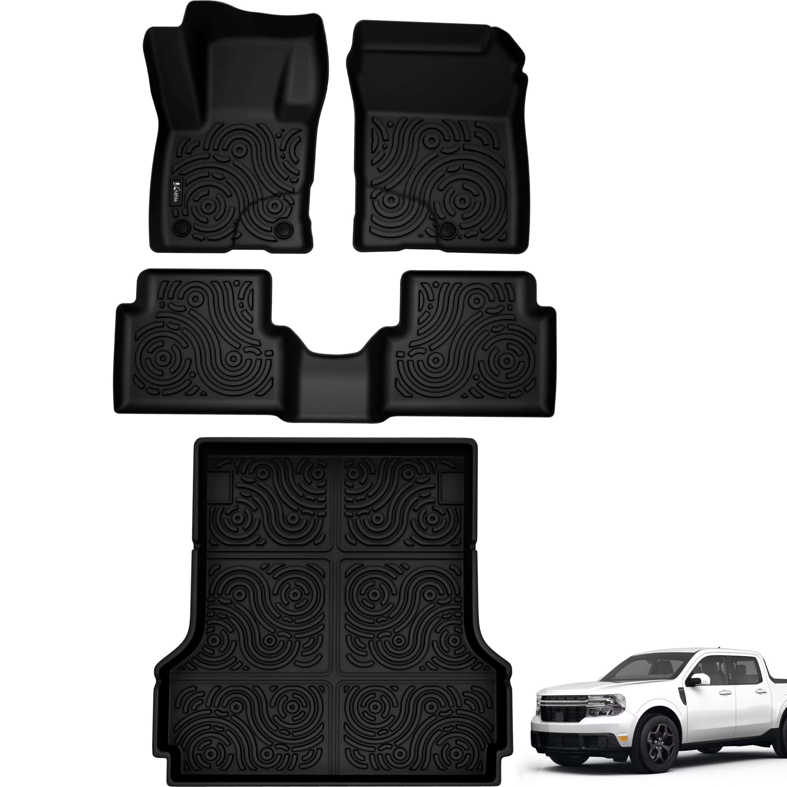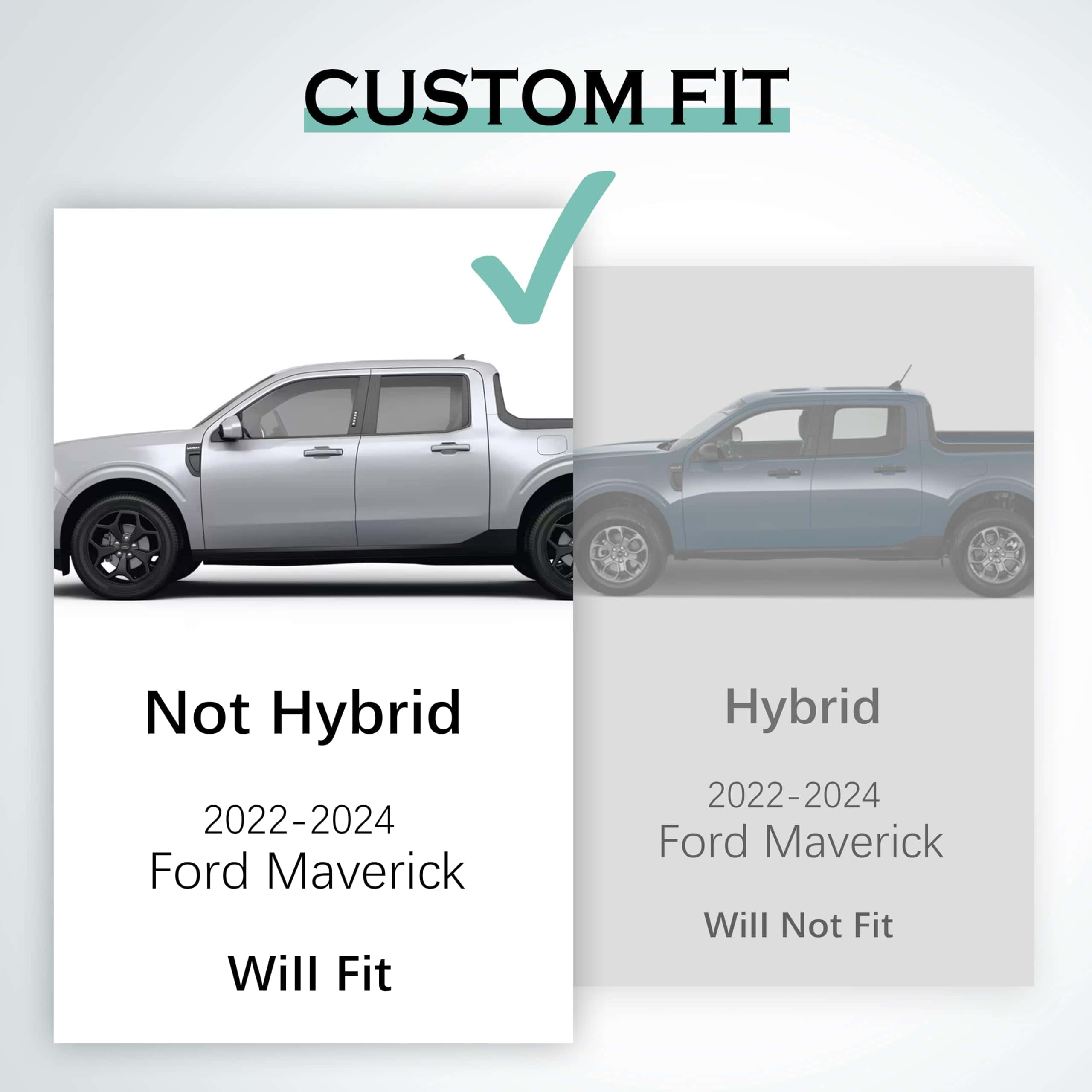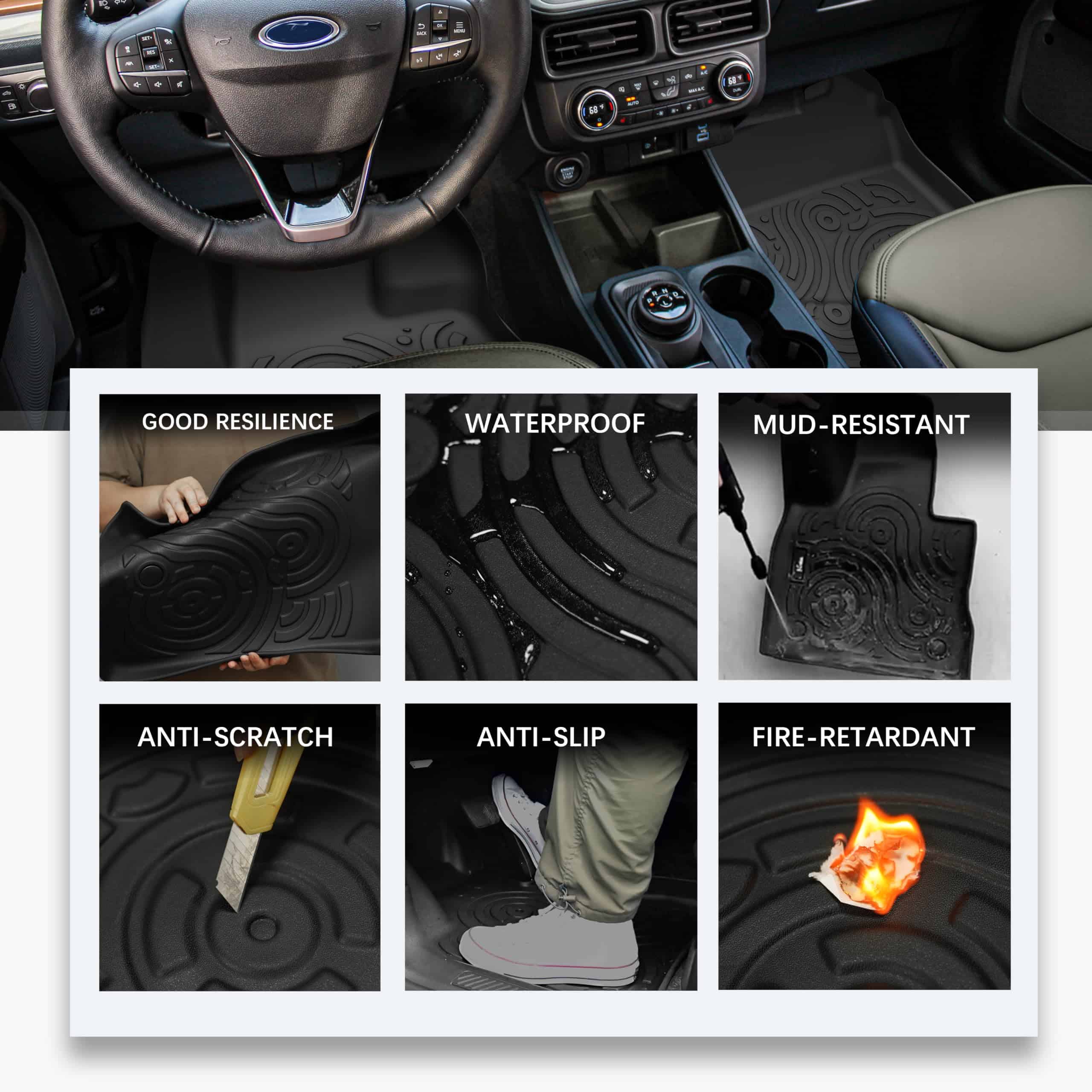 1. Ajuste Personalizado: Nuestros tapetes son compatibles con el ford maverick 2022-2024 (no compatible con modelos híbridos). Utilizando tecnología avanzada de escaneo láser 3D y diseño de precisión en el juego de tapetes de piso y tapete para maletero, asegurando un ajuste perfecto con los dos espacios de filas originales del automóvil y proporcionando protección integral.