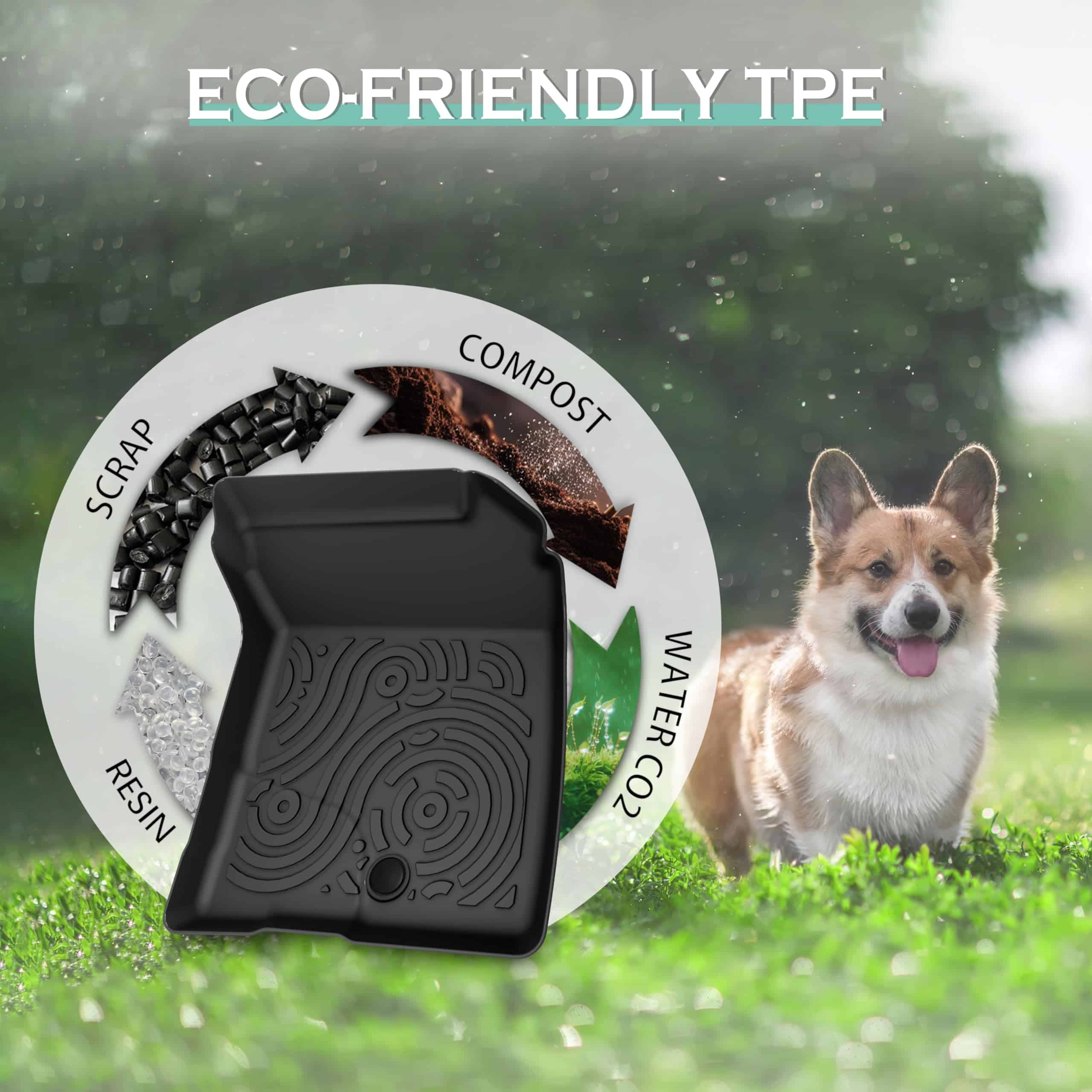2. MATERIAL ECOLÓGICO: Fabricado con material de TPE, nuestros tapetes contribuyen a la sostenibilidad ambiental. El TPE es un elastómero termoplástico reciclable con excelente flexibilidad y resistencia, y los tapetes de piso de caucho tienen un impacto ambiental mínimo.