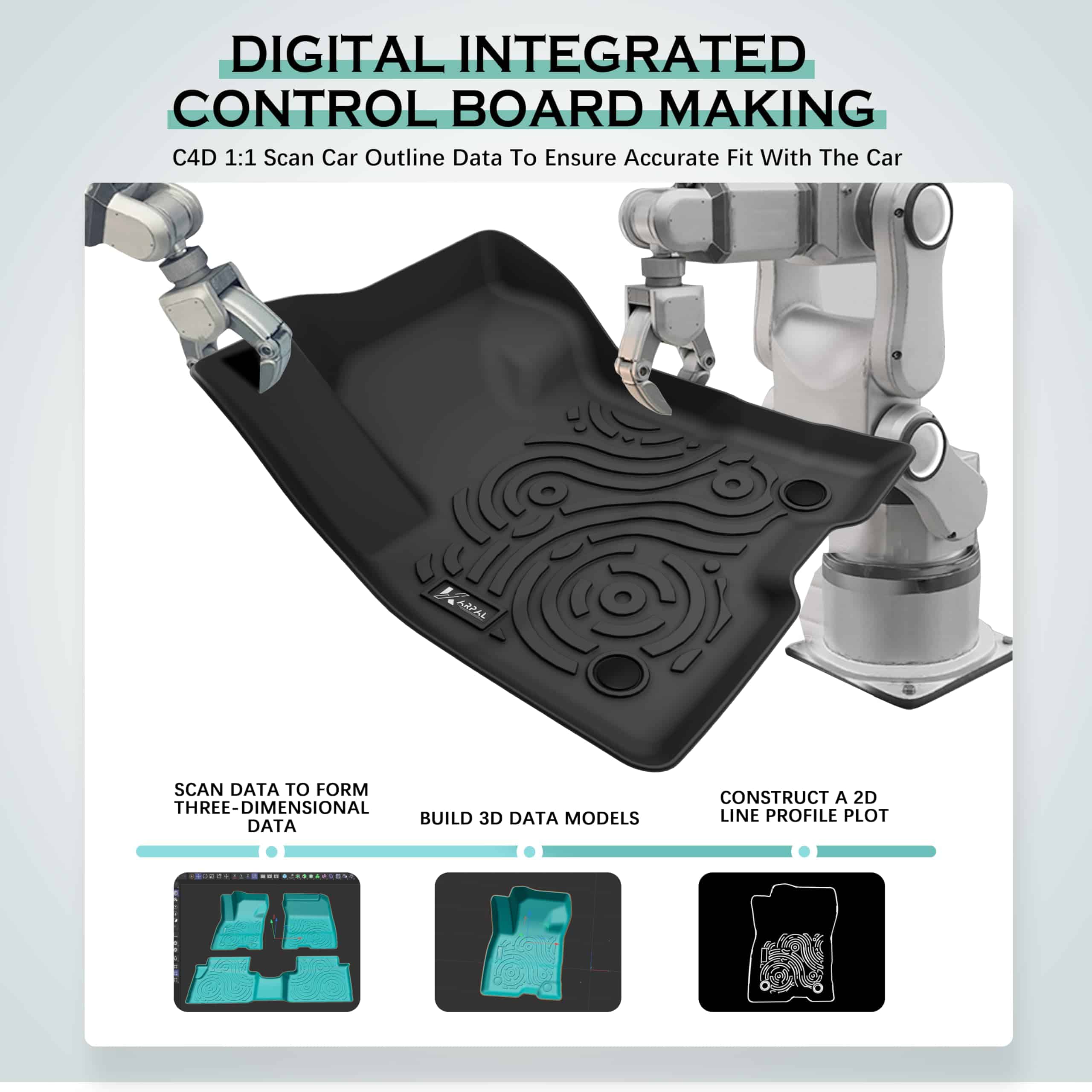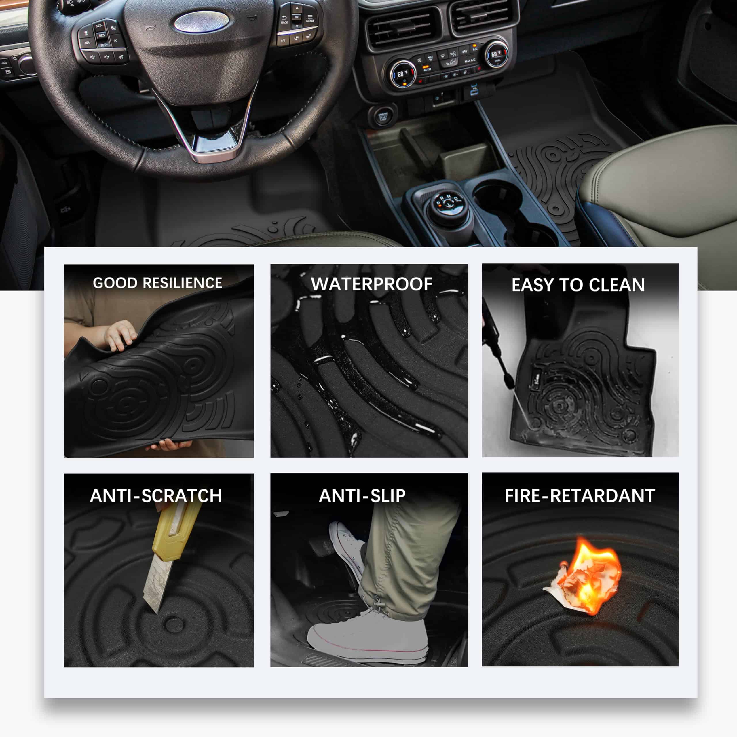 1. AJUSTE PERSONALIZADO: Nuestros tapetes son compatibles con el ford maverick 2022-2024 (Modelos híbridos). Utilizando tecnología avanzada de escaneo láser 3D y diseño de precisión en los tapetes, asegurando un ajuste perfecto con el espacio original de las dos filas del auto y brindando protección completa. Creando tapetes cómodos y personalizados para el área de asientos de la primera y segunda fila.