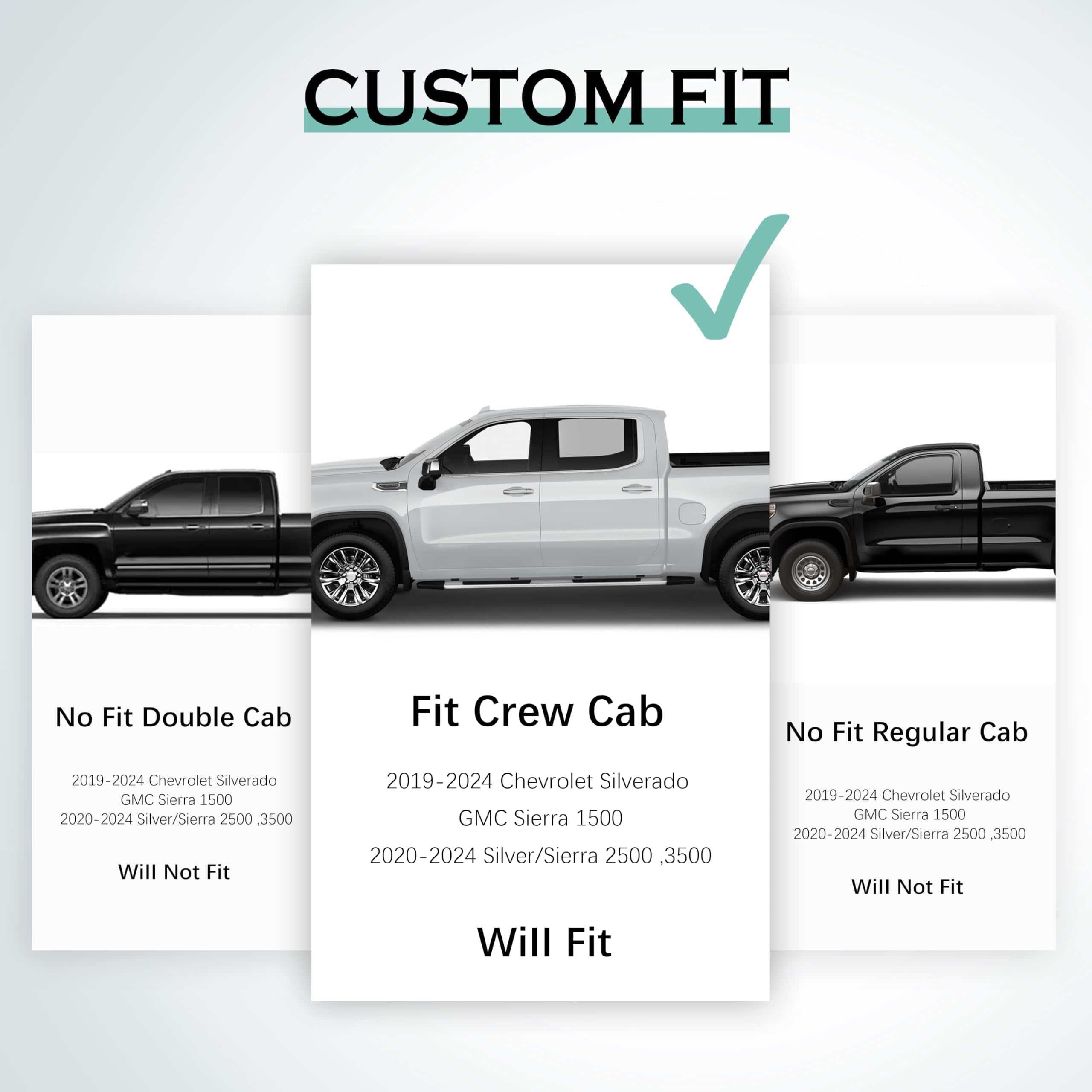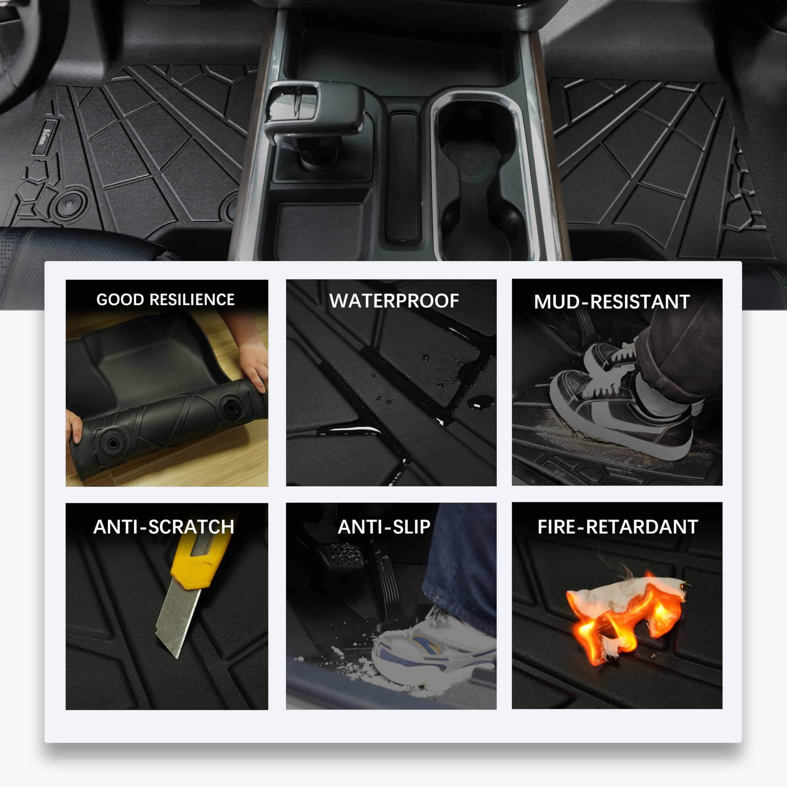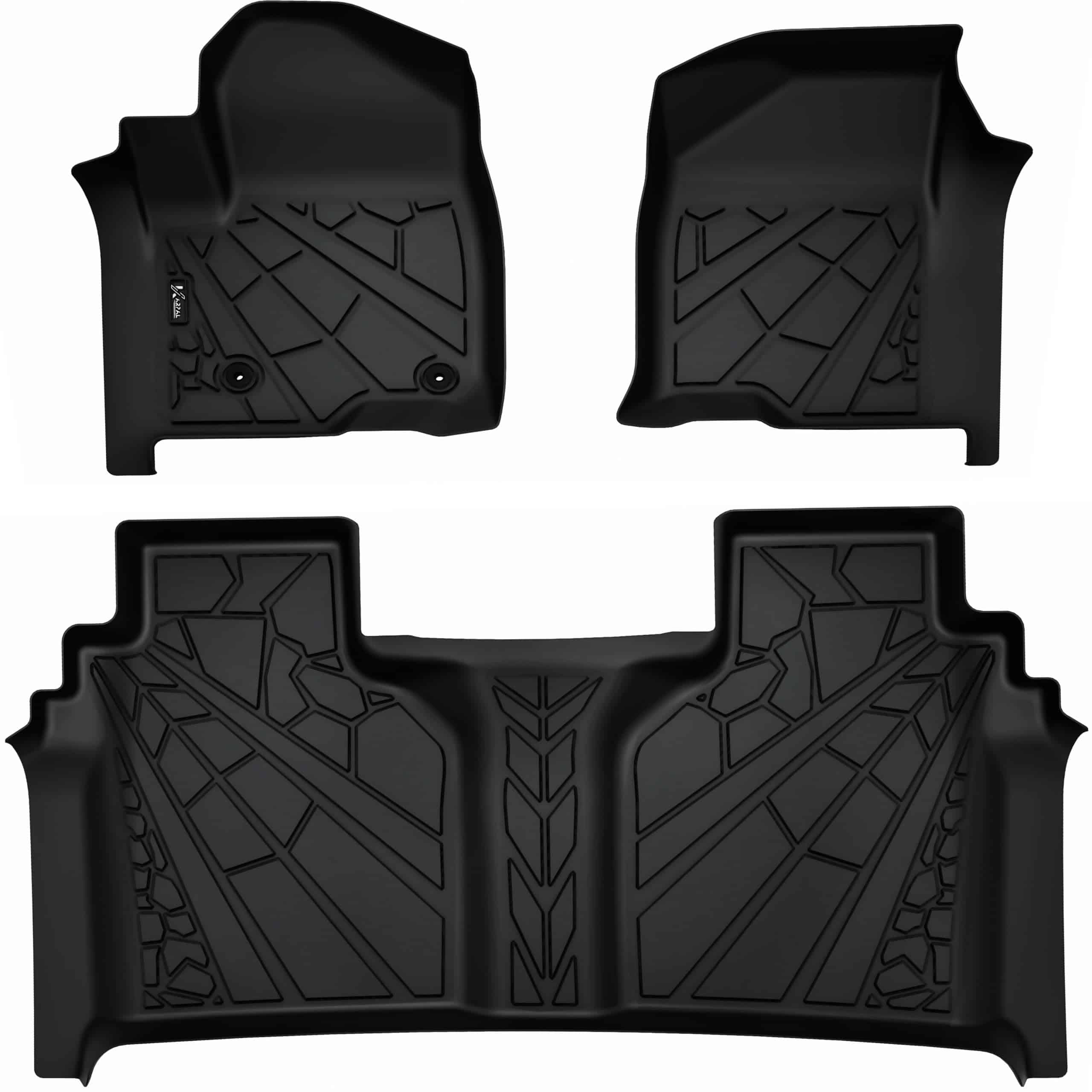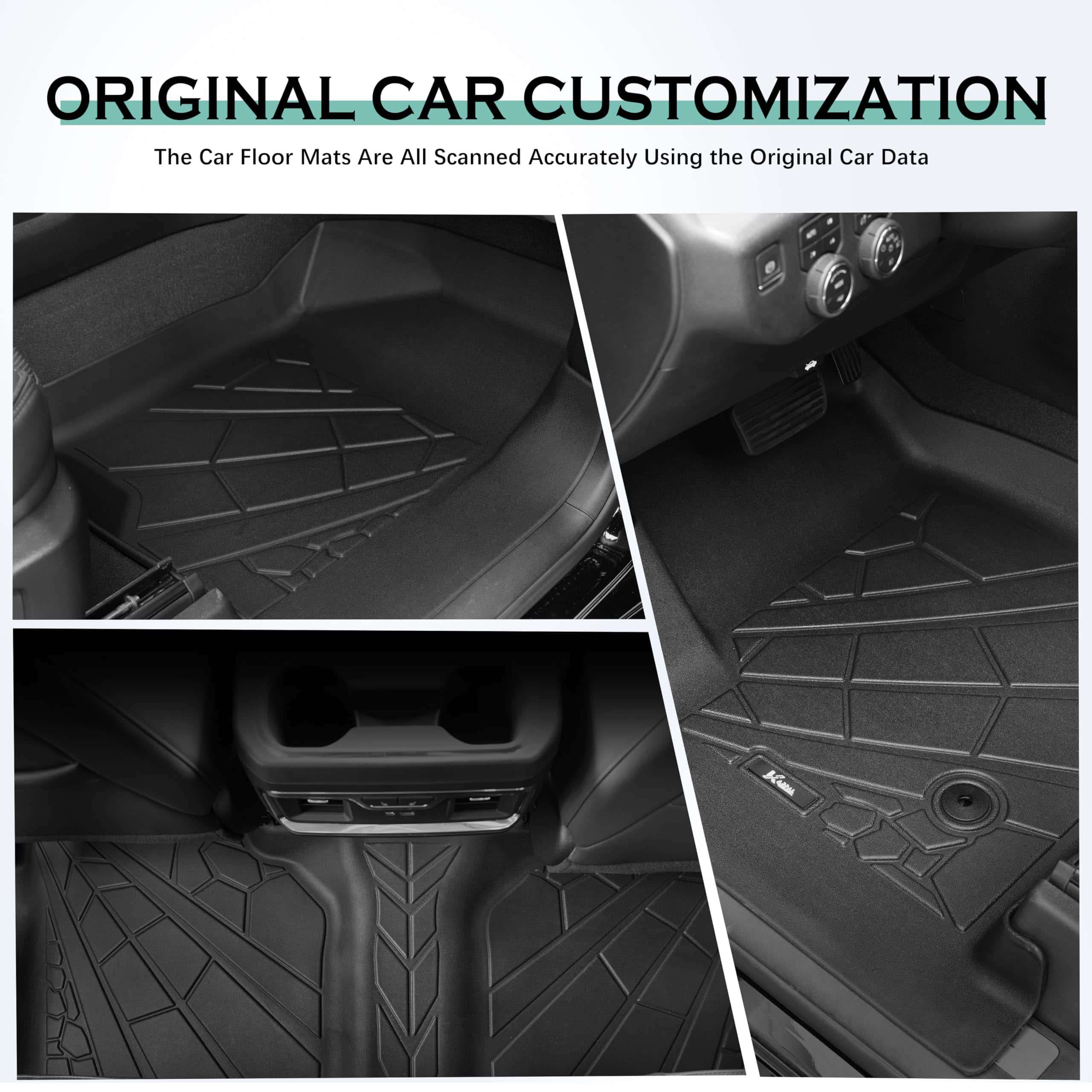 1. AJUSTE PERSONALIZADO: Nuestros tapetes son compatibles con los modelos 2019-2024 de Chevrolet Silverado 1500/GMC Sierra 1500 y 2020-2024 de Chevy Silverado/GMC Sierra 2500HD/3500HD Crew Cab con Caja de Almacenamiento bajo el Asiento Trasero y Asiento Delantero tipo Cubo. Utilizando tecnología avanzada de escaneo láser 3D y un diseño preciso en los tapetes, garantizamos un ajuste perfecto con el espacio de dos filas original del automóvil y proporcionamos protección integral. Esto crea tapetes cómodos y personalizados para el área de asientos de la segunda fila.