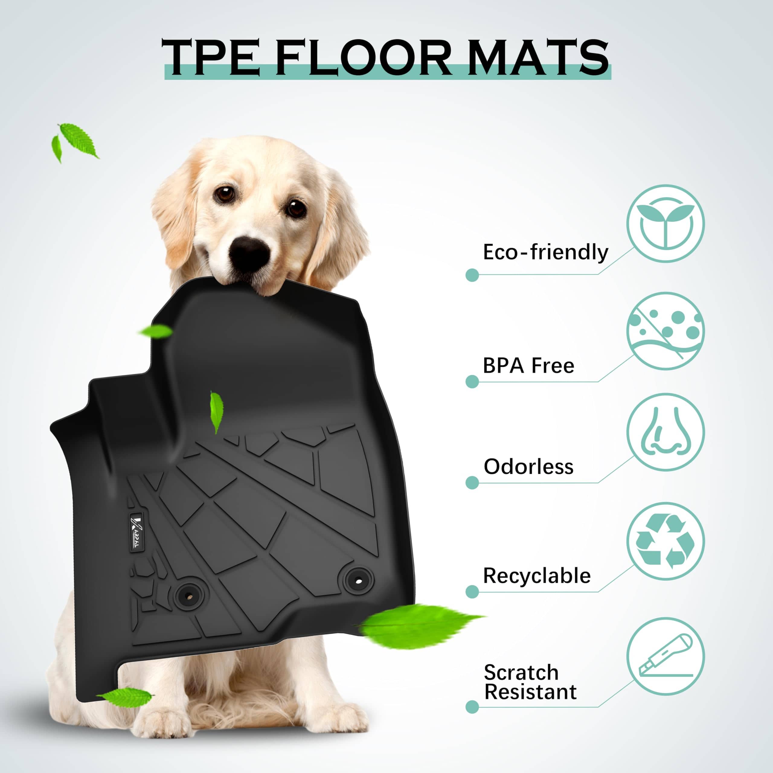 2. MATERIAL ECOLÓGICO: Hechos de material TPE, nuestros tapetes contribuyen a la sostenibilidad ambiental. El TPE es un elastómero termoplástico reciclable con una excelente flexibilidad y resistencia. Los tapetes de goma tienen un impacto ambiental mínimo y son prácticamente inodoros, eliminando el desagradable olor a goma que a menudo se encuentra en el interior de los automóviles.