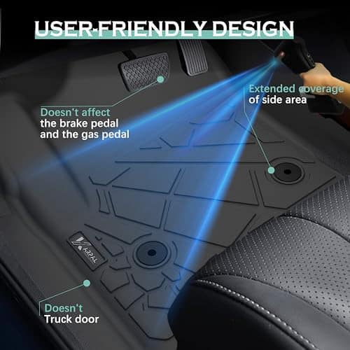 4. IMPERMEABLE: Los tapetes de automóvil presentan un diseño antideslizante tridimensional con líneas texturizadas, previniendo eficazmente que el agua de lluvia, el barro y otros líquidos penetren en el interior del vehículo. El forro de piso del automóvil ayuda a mantener la limpieza del interior del automóvil y prolonga la vida útil de la alfombra del automóvil.