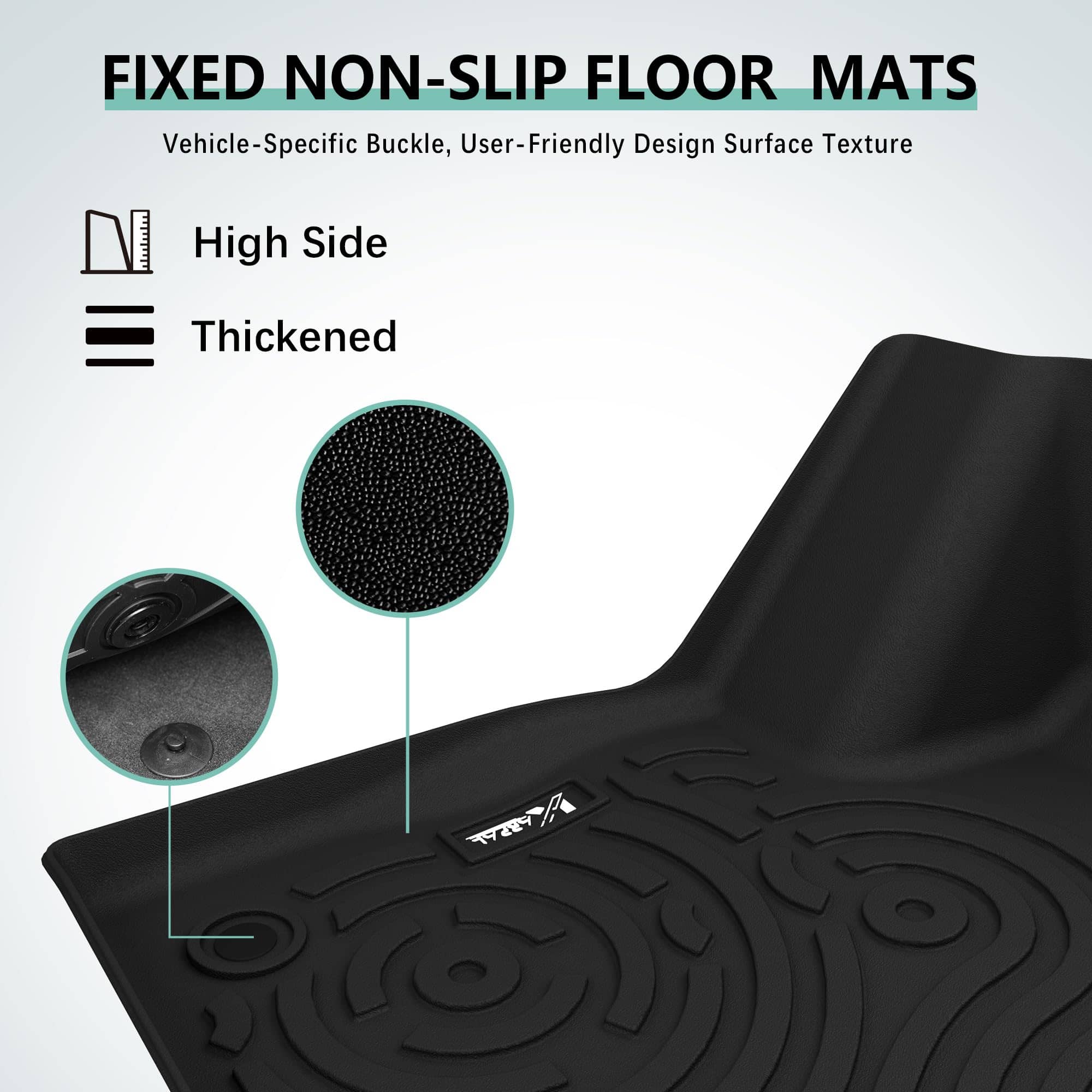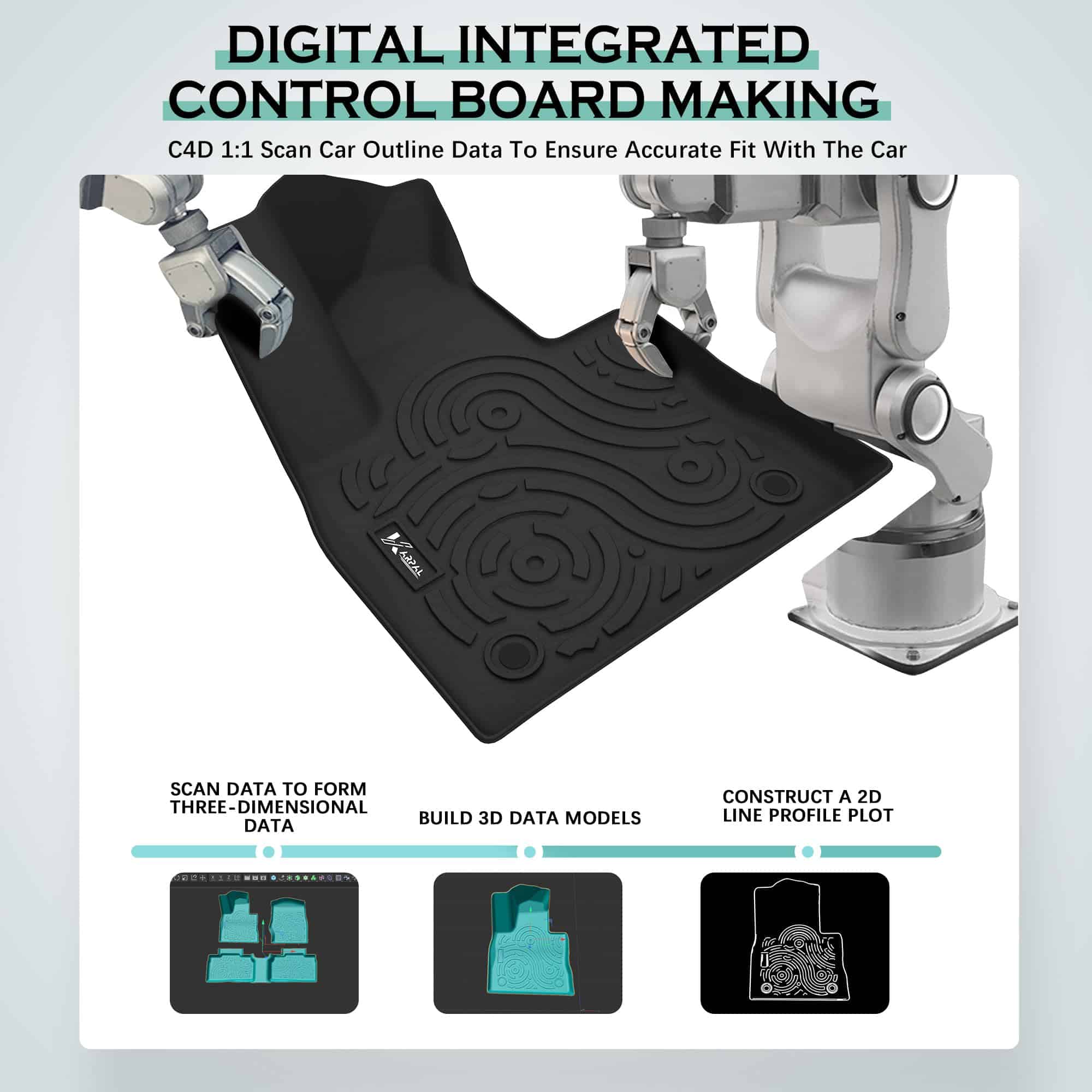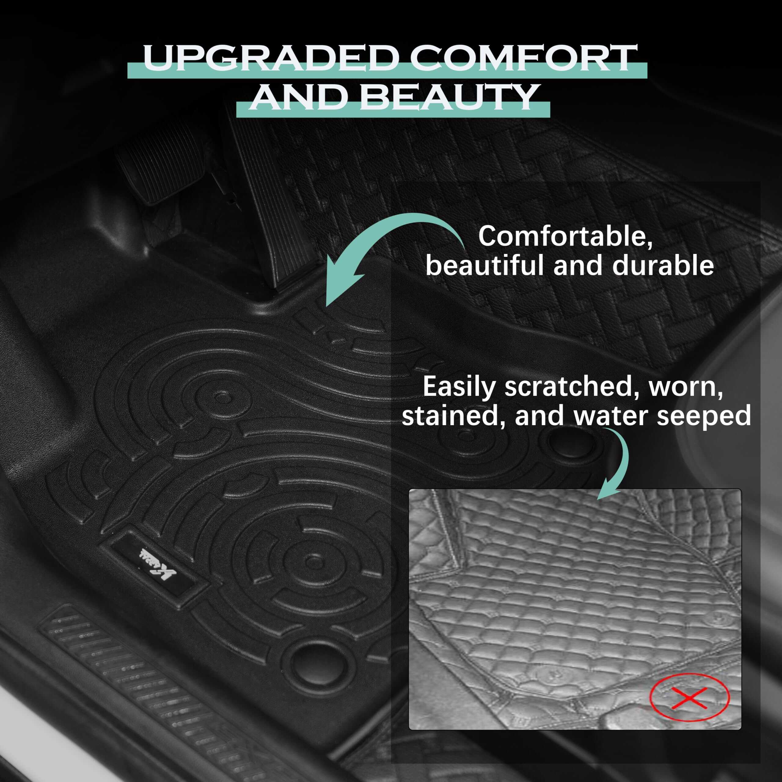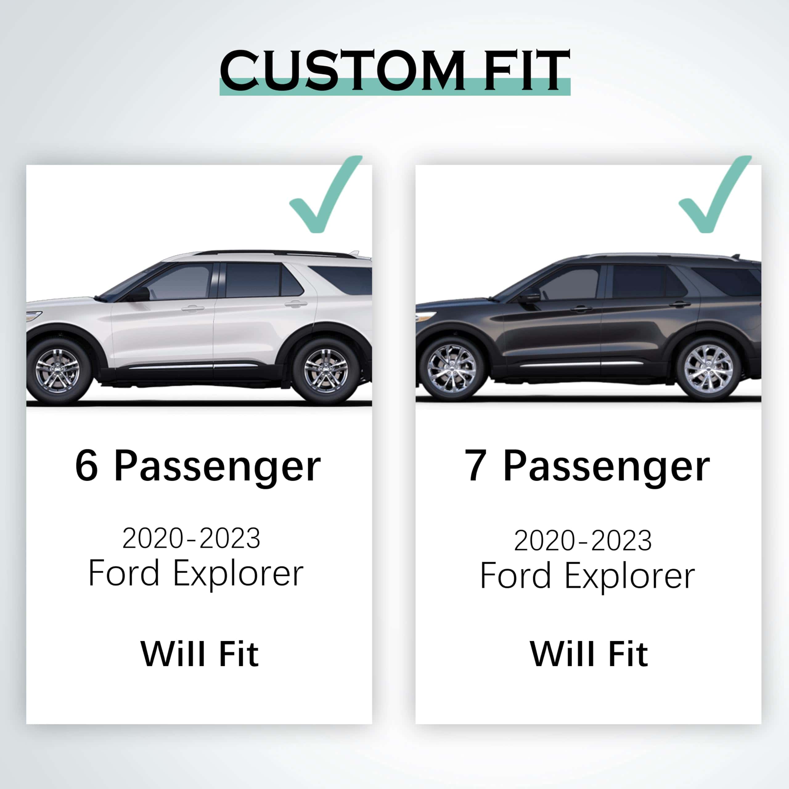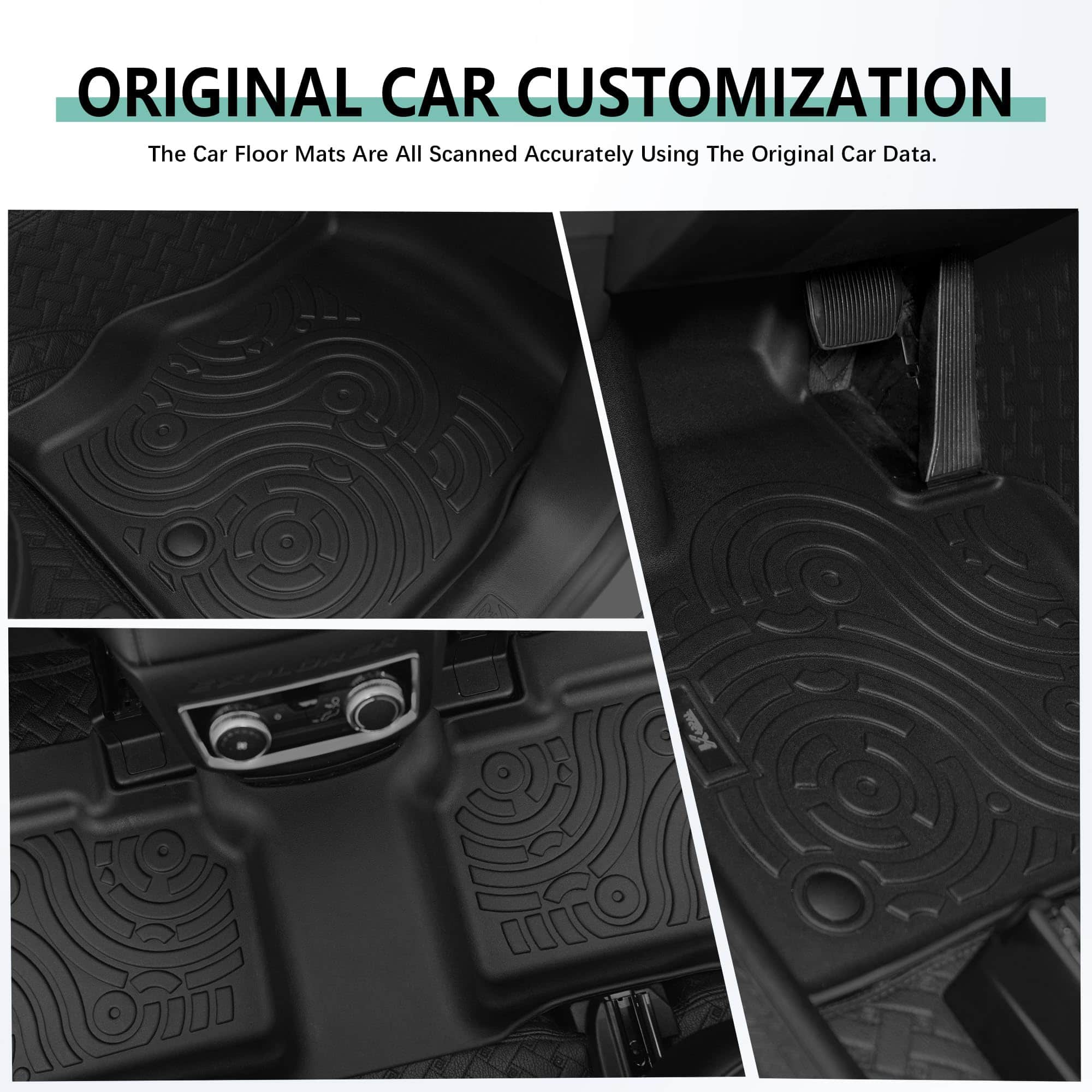 1. AJUSTE PERSONALIZADO: Nuestros tapetes son compatibles con Ford Explorer 2020-2024 (para 6 y 7 pasajeros). Utilizando tecnología avanzada de escaneo láser 3D y diseño de precisión en los tapetes, asegurando una combinación perfecta con el espacio original de dos filas del coche y proporcionando protección integral. Esto crea tapetes cómodos y personalizados para el área de asientos de la primera y segunda fila.