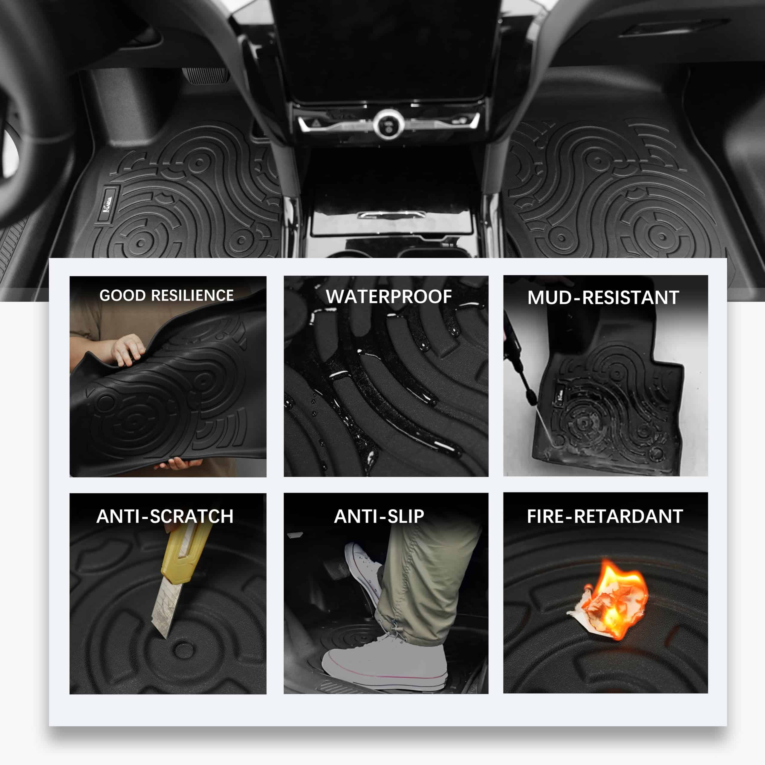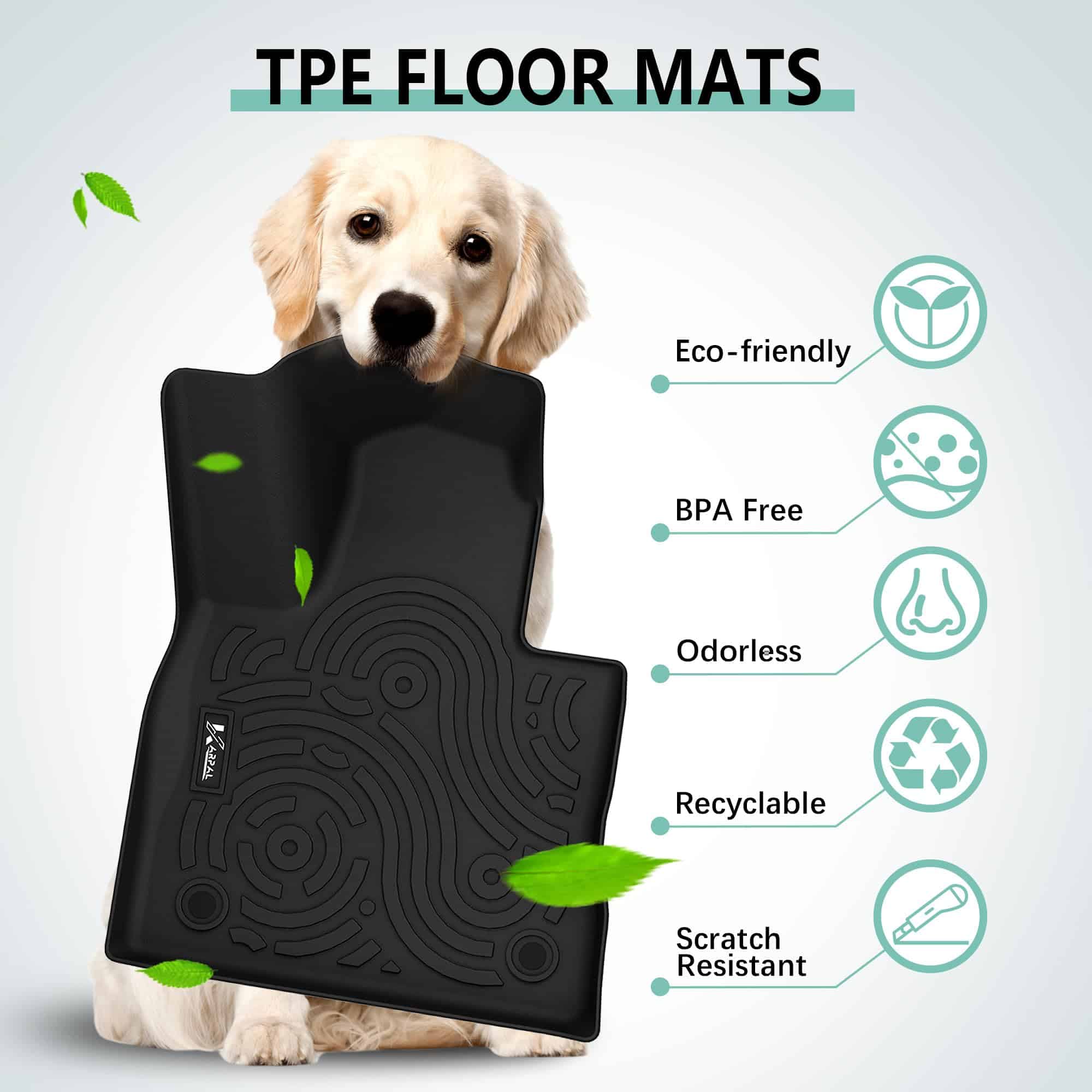 3. DURABILIDAD TODO CLIMA: El material TPE dota a los tapetes con una durabilidad robusta, haciendo que la superficie sea resistente a los arañazos y al desgaste. Esto garantiza un rendimiento excepcional en diversas condiciones climáticas, ya sea el calor abrasador del sol o las gélidas temperaturas invernales, estos tapetes todo clima mantienen una alta resistencia y flexibilidad.