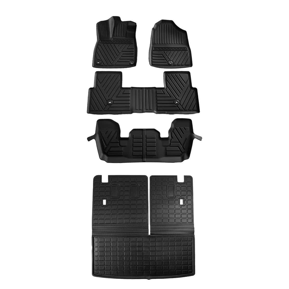 1. Diseño: De acuerdo con el diseño original del automóvil, nuestros tapetes de maletero son adecuados para el Honda Pilot 2023 2024 2025, incluyendo 1 tapete de carga con tapete de respaldo y 4 tapetes.