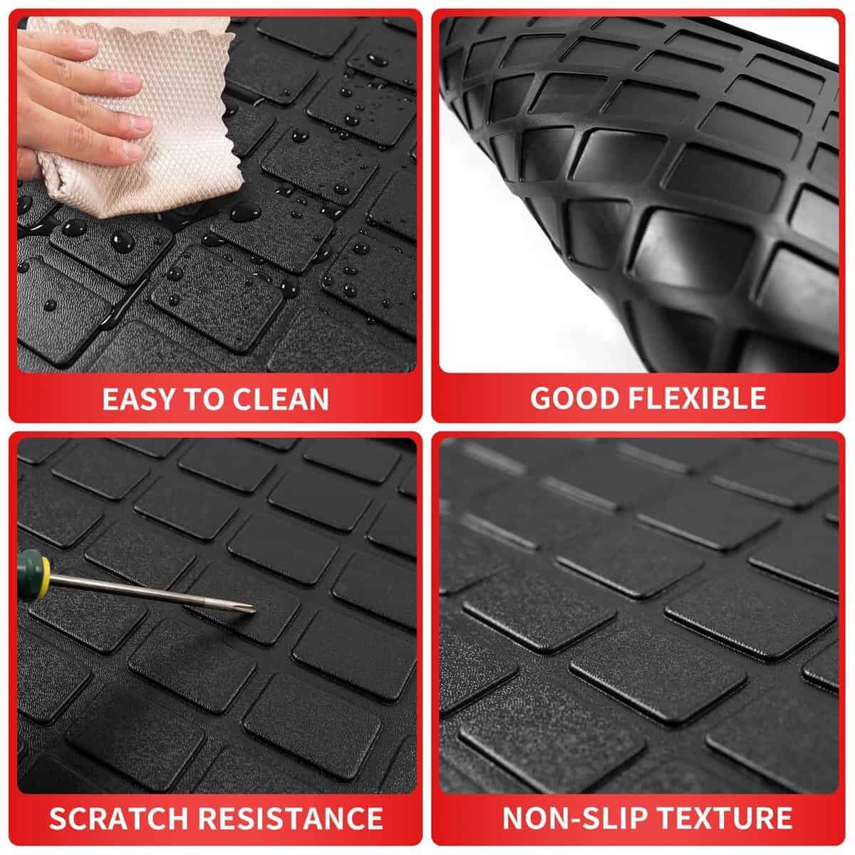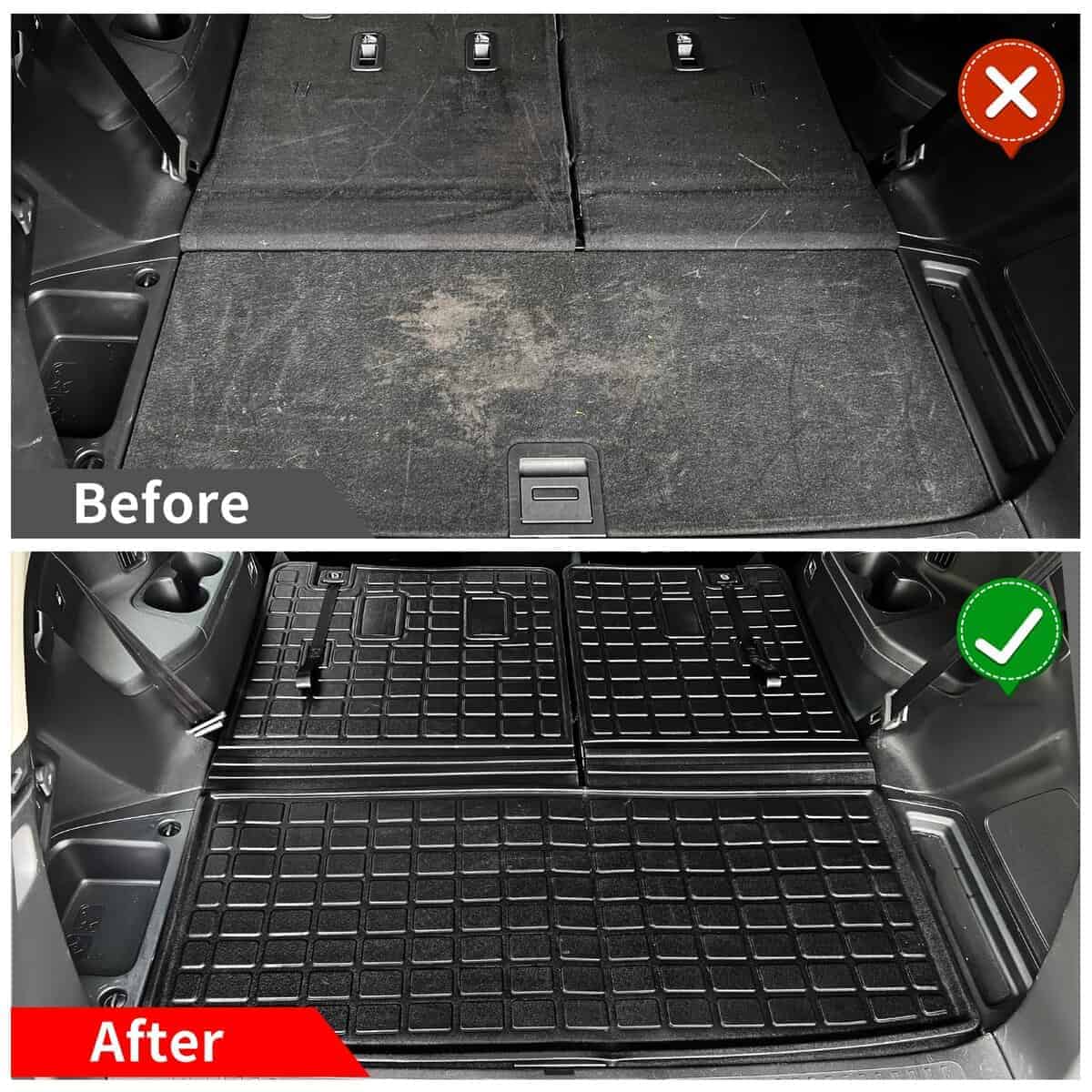 2. Función: Este forro de carga de TPE ofrece protección contra derrames, arena, nieve y cualquier otra suciedad, con este tapete de maletero no tendrás que preocuparte por arruinar tu tapete original.