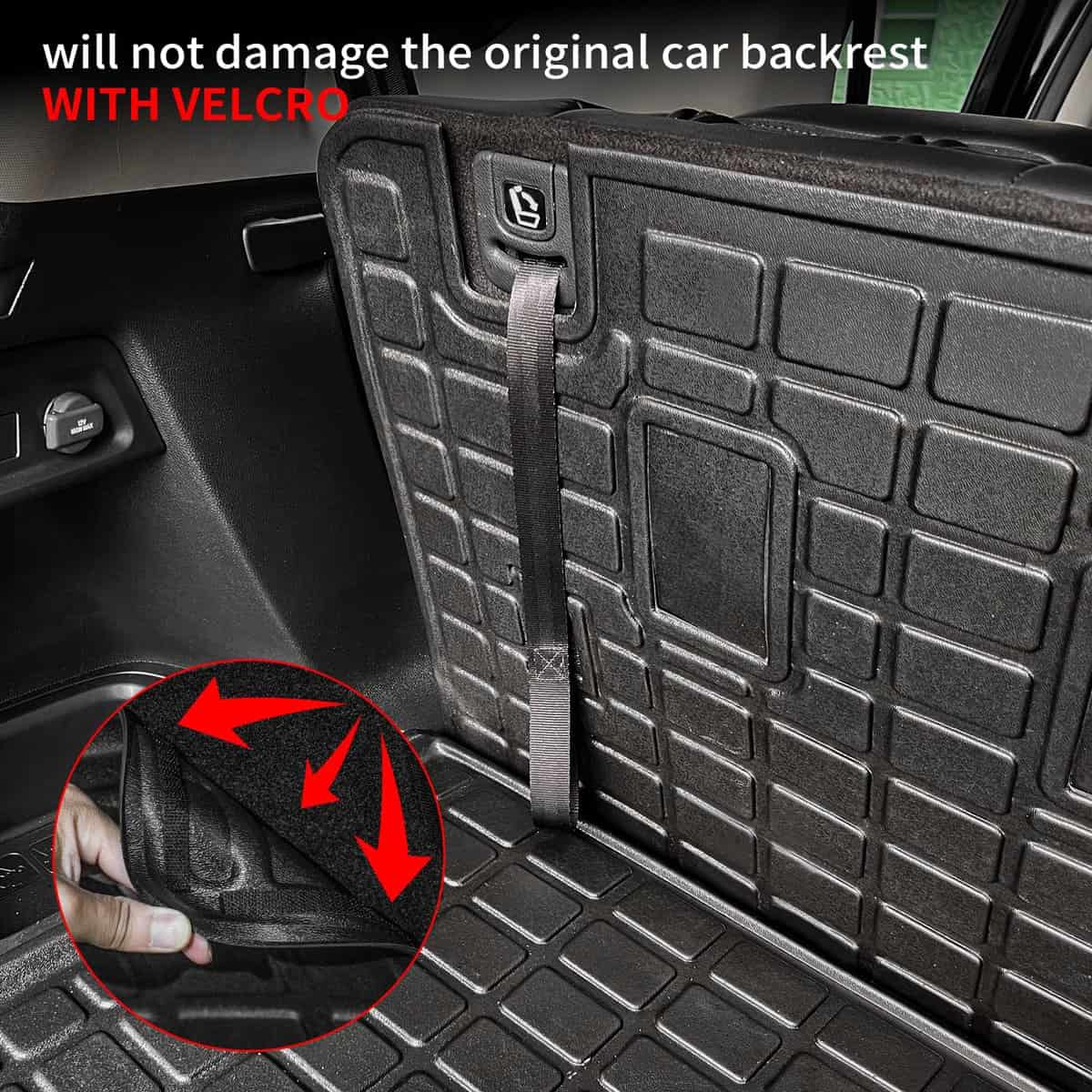 4. Instalación: Hay Velcro en la parte trasera del forro trasero, que se puede pegar en el respaldo del asiento. Instalación rápida y sencilla, no se necesitan herramientas.