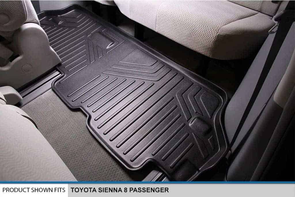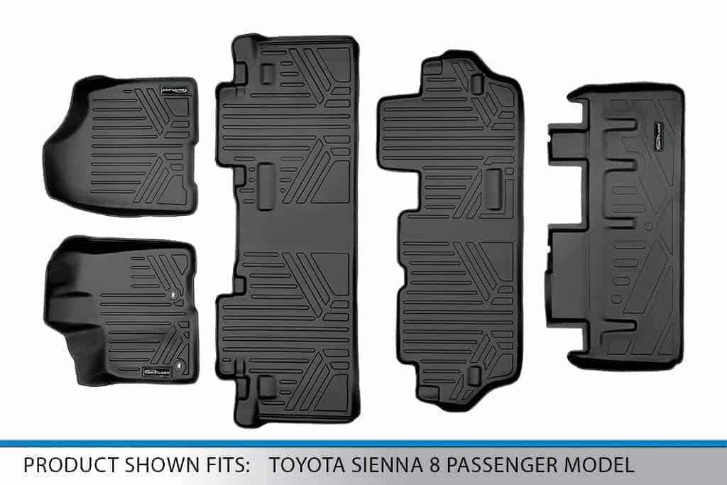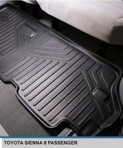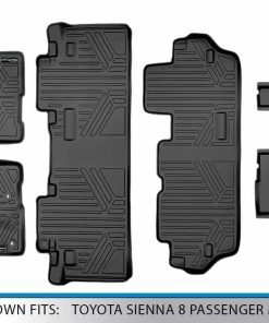 Solo se adapta a modelos de 8 pasajeros. No es compatible con modelos con asientos de la 3ra fila plegables eléctricos. Los tapetes están diseñados para cubrir la mayoría de la zona de pasajeros, limitando el movimiento de la 2da fila. El forro de carga cubre detrás de los asientos de la 3ra fila. Estos tapetes ofrecen protección resistente a las manchas contra todos los elementos, incluyendo nieve, barro, arena y agua salada. El borde elevado y el diseño personalizado construido utilizando tecnología innovadora de escaneo de vehículos asegura un ajuste perfecto para proteger el piso de alfombra de su vehículo del clima, derrames y cualquier desorden. Estos tapetes son fáciles de limpiar con una manguera o limpiándolos con un paño húmedo y jabón. Mejore la apariencia general del interior de su automóvil con nuestro diseño texturizado, antideslizante y elegante. Nuestra protección 100% libre de olores está hecha con una mezcla de plástico-goma y polietileno 100% reciclable.