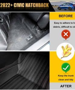 Compatibilidad: Este juego de tapetes (Tapete de Maletero + Tapetes) está diseñado para el Honda Civic Hatchback 2022 2023. Nota: No es compatible con el Honda Civic Sedán y el Sport Touring Hatchback con el Altavoz Subwoofer. Los tapetes traseros no son compatibles con los puertos USB.