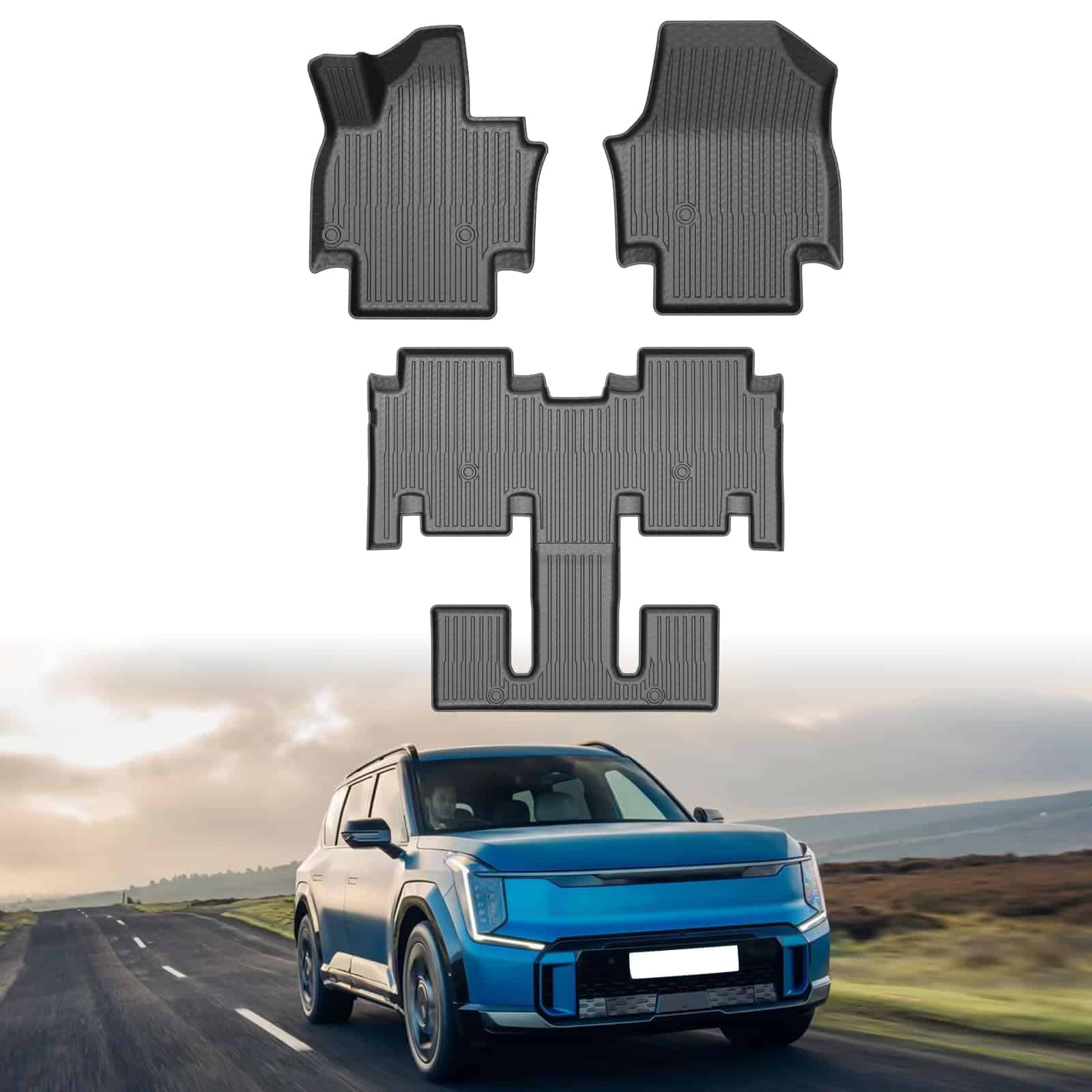 1. Ajuste personalizado para Accesorios EV9: Los tapetes son compatibles con Kia EV9 6 Pasajeros del año 2024.