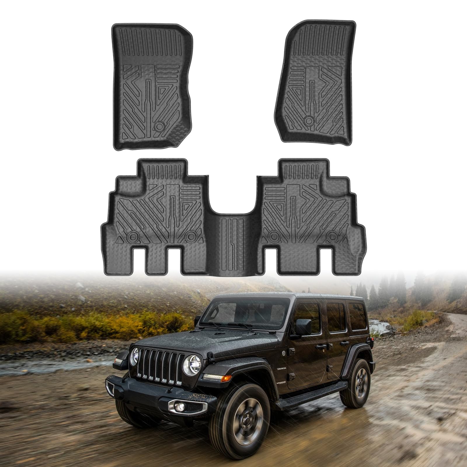 1. Tapetes para Wrangler JKU: Los revestimientos de piso son compatibles con Jeep Wrangler JK Unlimited 4 puertas 2014-2018.