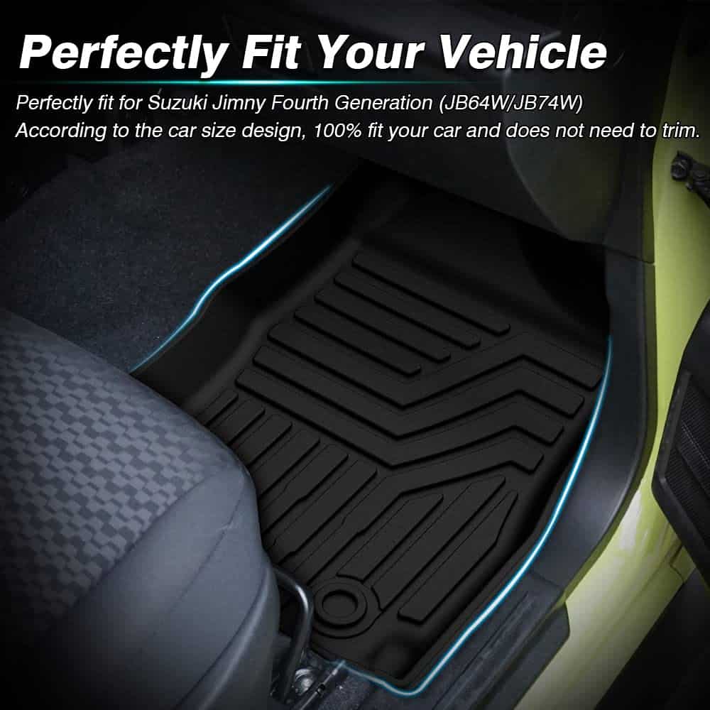 1. Tapetes para Suzuki Jimny: Los liners son hechos a la medida para los modelos 2019-2023 Suzuki Jimny JB64 JB74 solo para AT (Transmisión Automática). El escaneo láser hace que el tapete sea perfectamente compatible con tu vehículo.