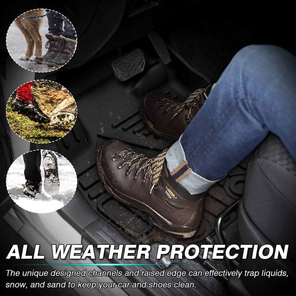 4. Protección Todo Clima: Nuestros tapetes tienen resistencia a temperaturas de -40 F a 122 F. El diseño de cobertura más amplia puede atrapar arena, agua, barro, suciedad, lluvia, lodo. Protege el suelo de tu vehículo de cualquier otro accidente sucio.